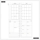 - El diseño tipo dashboard cuenta con una sección para listar recados, listas de compras, facturas y tareas pendientes, mientras que el lado derecho tiene espacios en forma de recuadro para recordatorios o planes diarios.