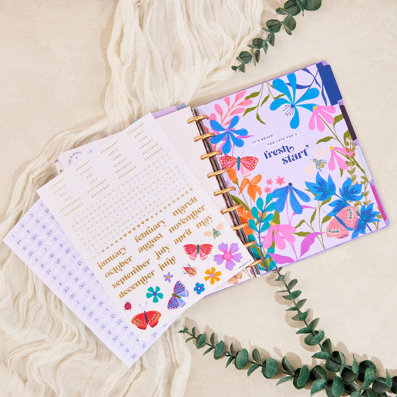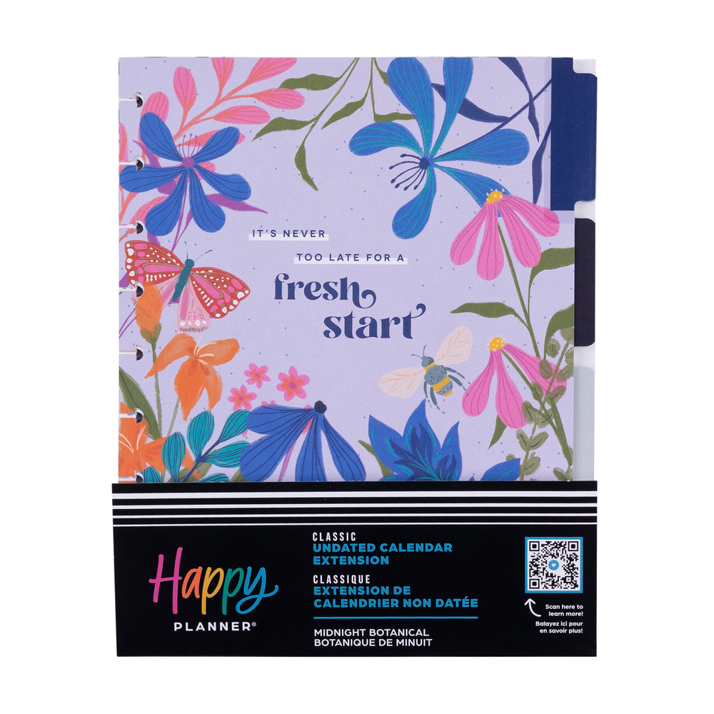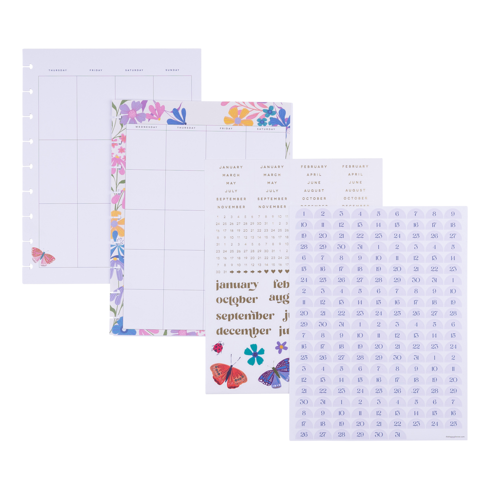Aumenta la vida útil de tu agenda con esta clásica extensión Midnight Botanical. Con 6 meses de calendarios sin fecha y diseños verticales, organízate y decora con los stickers inspirados en un paseo por un jardín nocturno.
