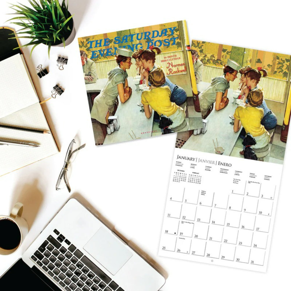 Disfruta de un 2026 lleno de nostalgia y estilo con el Calendario Saturday Evening Post 12 Meses. Cada mes presenta ilustraciones clásicas que capturan la esencia de una época inolvidable, combinando arte y funcionalidad para mantener tu año organizado.