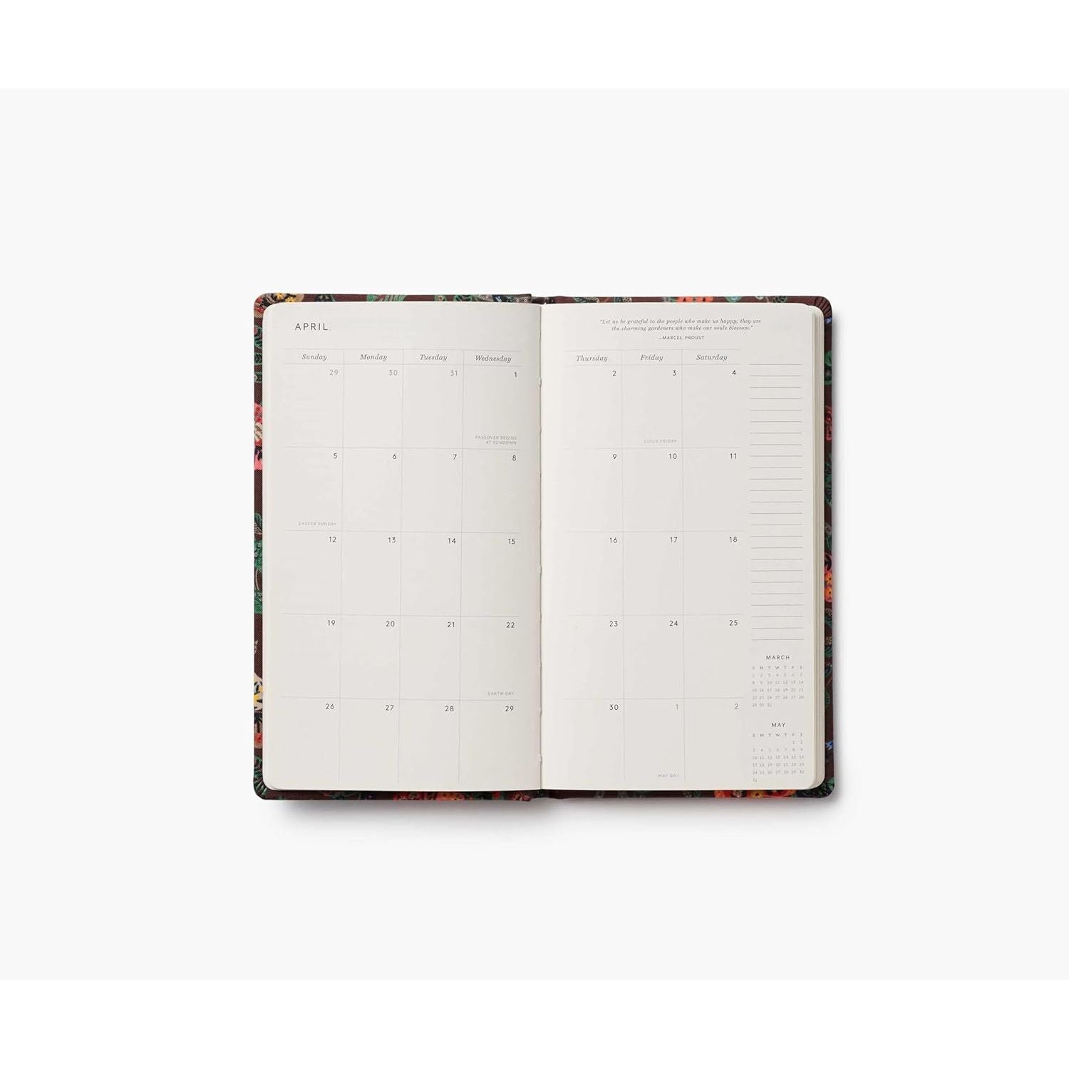 La agenda de bolsillo más compacta de Rifle Paper Co. está diseñada para ofrecer estilo y practicidad en un tamaño reducido. Es la agenda más pequeña de la colección, con una encuadernación en espiral semioculta que la hace muy fácil de manejar. Incluye vistas mensuales y quincenales, junto con espacio dedicado para anotar fechas y notas importantes. Ideal para quienes buscan organización sin renunciar al diseño.