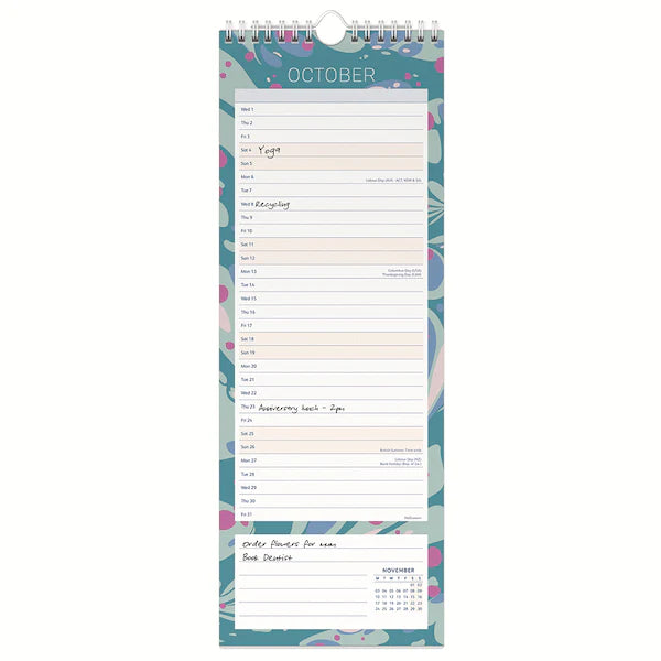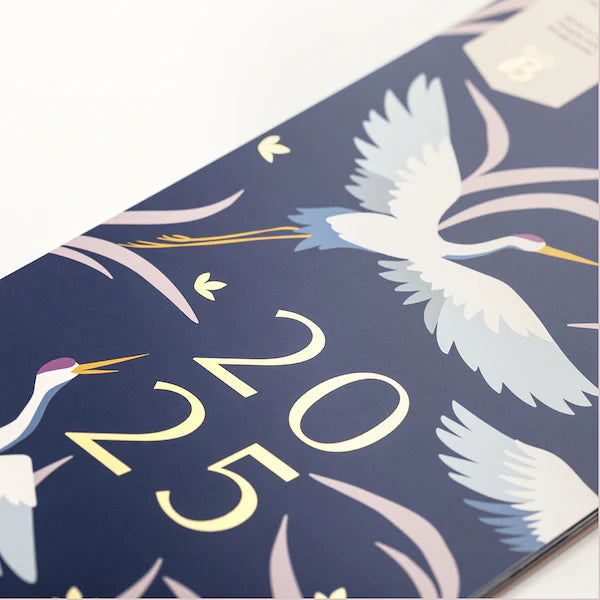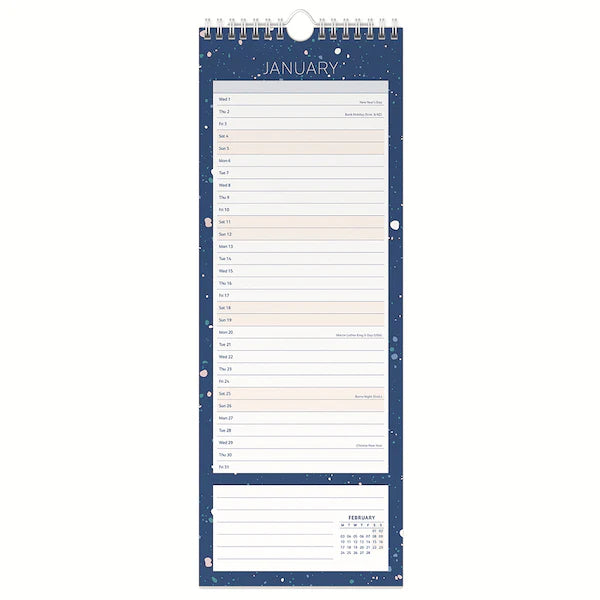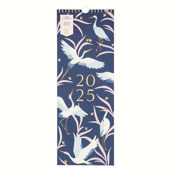 Este calendario slim, decorado con delicadas garzas sobre un fondo azul profundo, ofrece una forma elegante y sencilla de mantener tus planes en orden. Su diseño vertical y estilizado lo hace perfecto para espacios reducidos, añadiendo un toque decorativo mientras organiza tus días. Cada mes está claramente dispuesto para facilitar la planificación, y su formato delgado lo convierte en el complemento ideal para cocinas, oficinas o cualquier rincón de tu hogar.