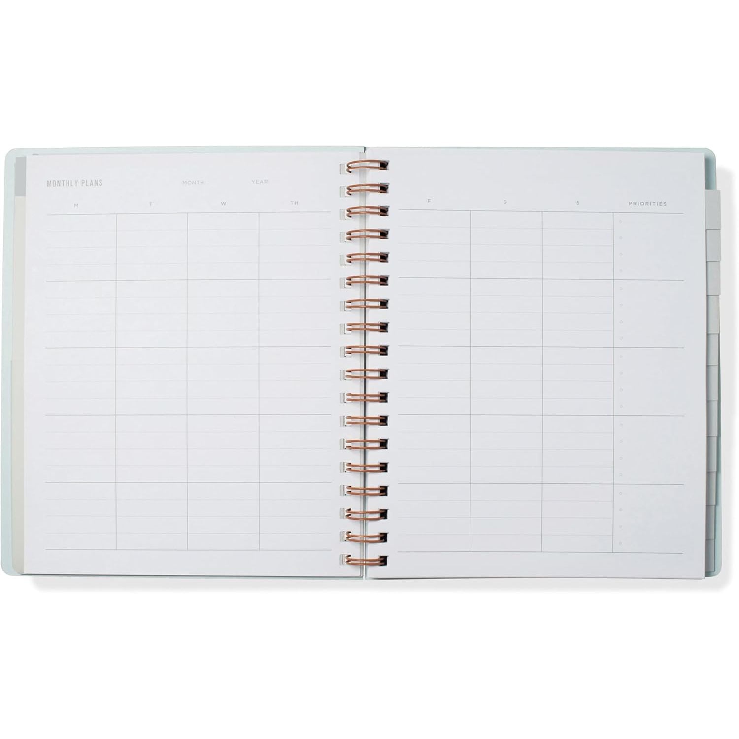 Este planificador mensual sin fecha cuenta con una cubierta texturizada decorada con ilustraciones exclusivas de Fringe y un diseño en bajorrelieve. Incluye una lámina de carbón, 12 separadores, páginas con indicaciones para cada mes, bolsillo doble y encuadernación en espiral de doble anilla a color. La portada interior ofrece tablas de conversión y horarios mundiales, proporcionando herramientas prácticas para organizar tu tiempo de forma eficiente.