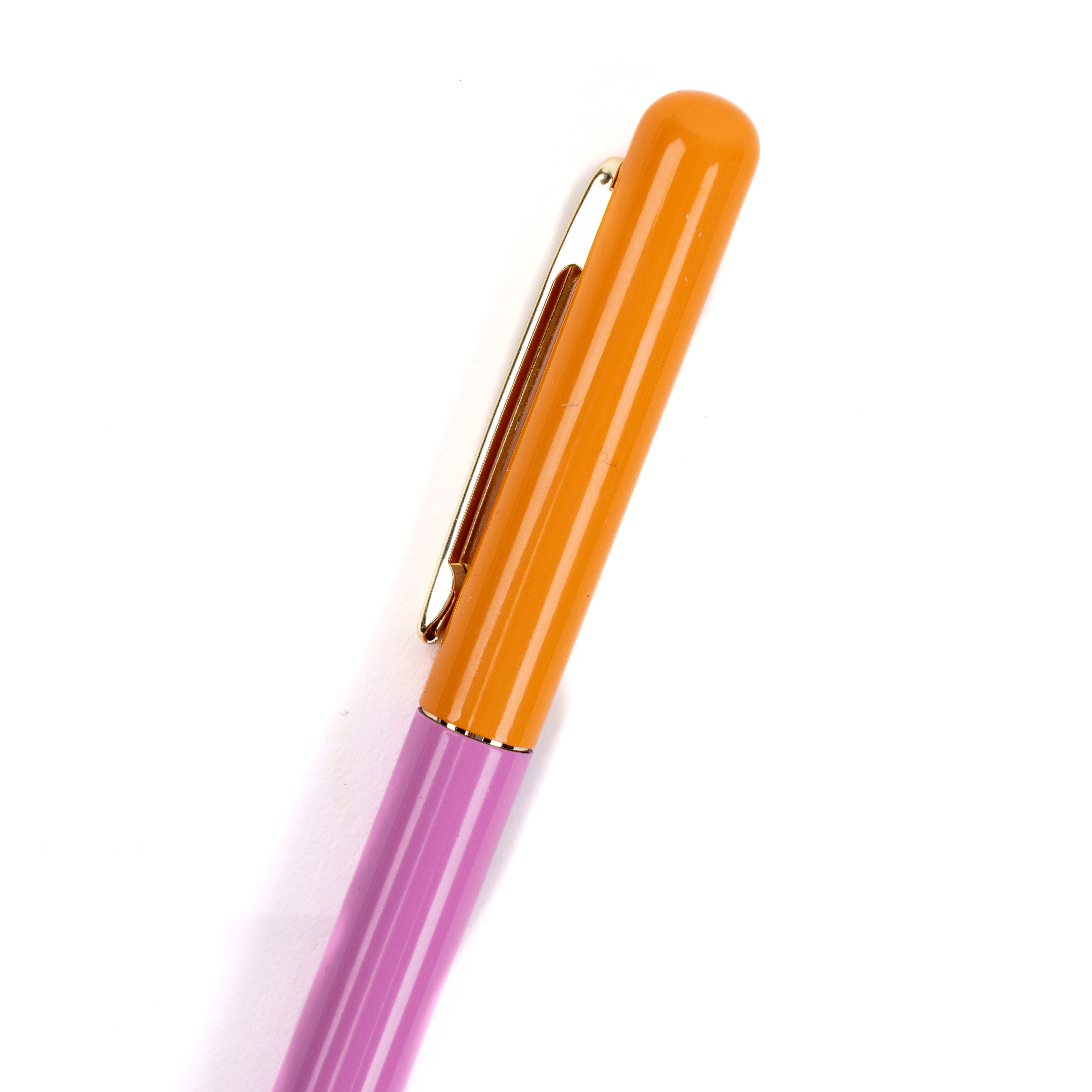 Bolígrafo con tinta azul de trazo suave y consistente, presentado en una carcasa bicolor que mezcla naranjo energético con rosado delicado. Un diseño que refleja personalidad y creatividad en cada escritura. Su construcción robusta asegura confiabilidad durante el uso cotidiano, mientras que los colores vibrantes lo hacen imposible de perder. Ideal para quienes desean expresar su estilo único en la oficina, la escuela o en casa. Cómodo de sostener durante largas sesiones, este bolígrafo combina funcionalidad práctica con un toque de color que alegra tu día a día.