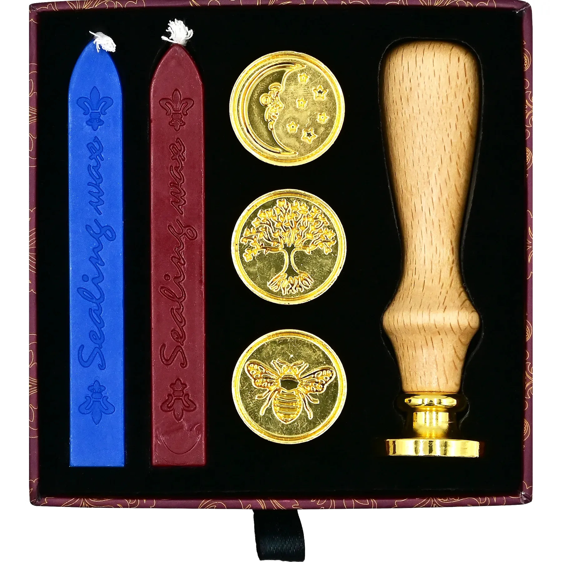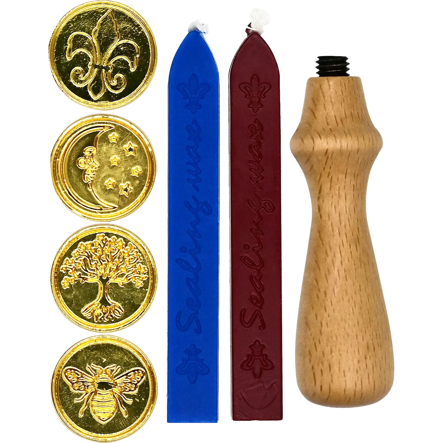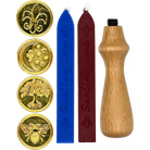 • El kit incluye 4 sellos de latón exclusivos, 1 mango de madera y 2 barras de cera