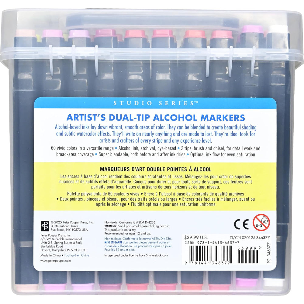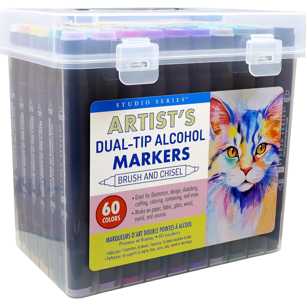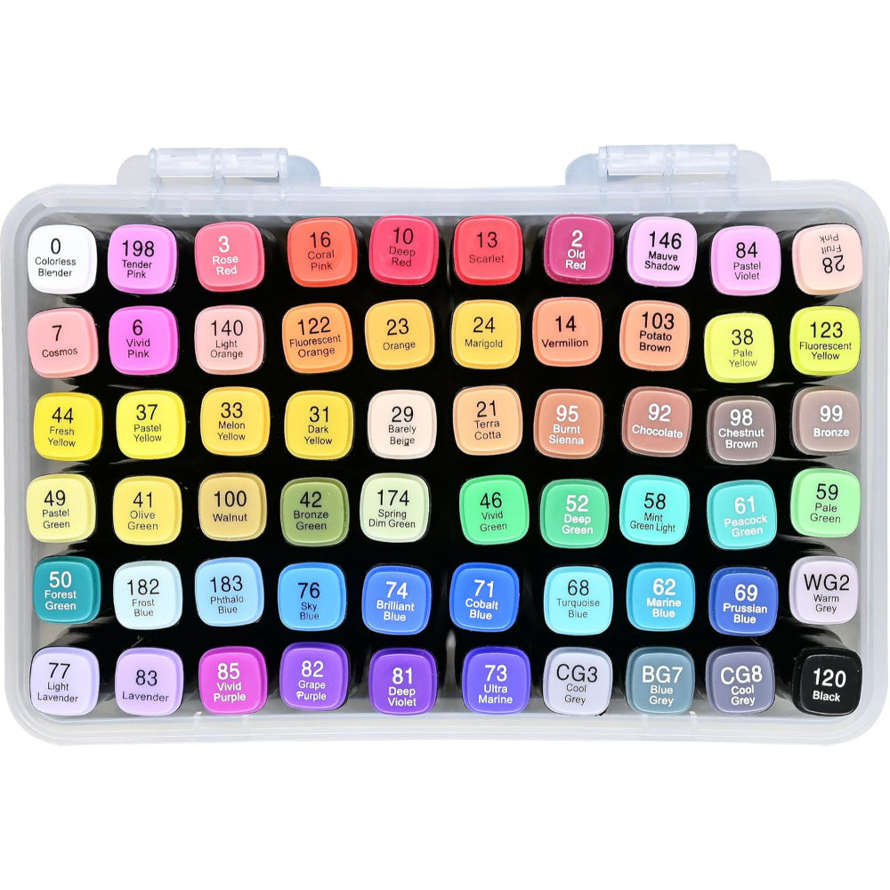 Este set de marcadores es una invitación a crear sin límites, combinando una paleta de 60 colores que va desde tonos suaves hasta vibrantes intensos. Su tinta a base de alcohol permite lograr áreas de color uniformes y mezclas suaves, ideales para sombreados profundos y efectos tipo acuarela llenos de vida. Gracias a su diseño de doble punta, puedes cubrir grandes superficies o trabajar detalles con total precisión, adaptándote a cada estilo y técnica.