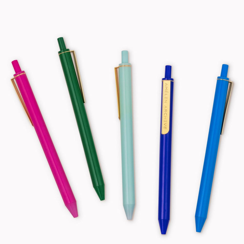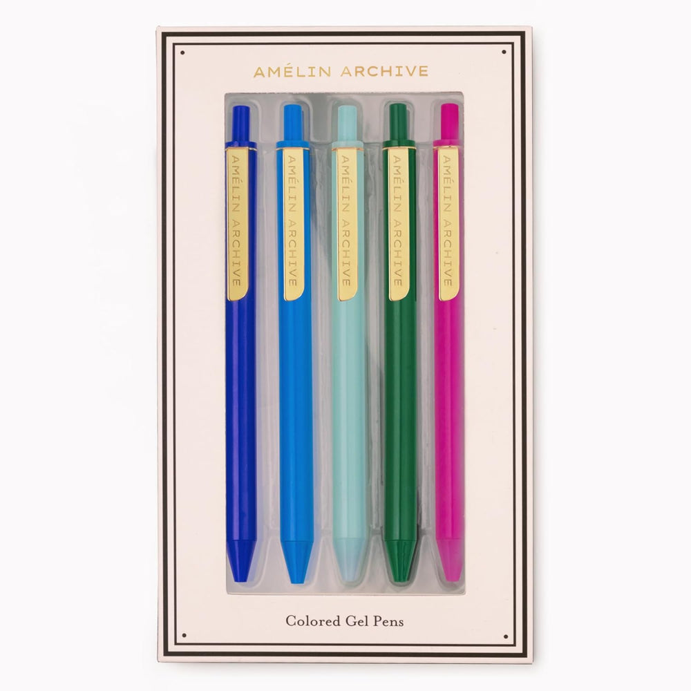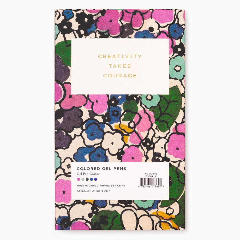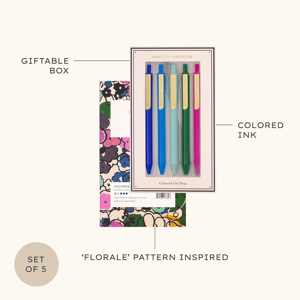 Set 5 Bolígrafos de Gel Caja Flores Violetas