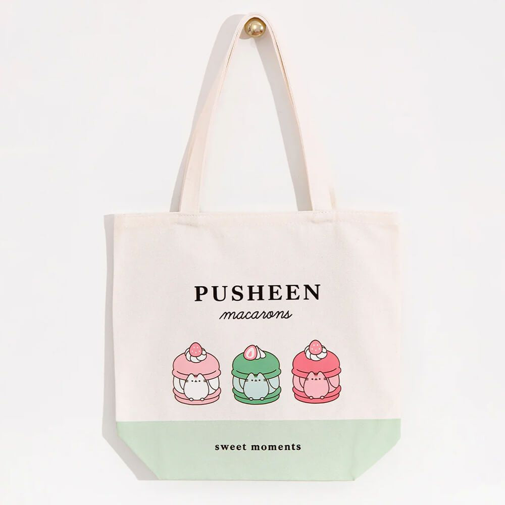 Descubre la Tote Bag Pusheen, ¡tu compañera ideal para lucir con estilo! Con el adorable diseño de Pusheen y sus macarons, este bolso multifuncional es perfecto para transportar todo lo que necesites a diario.