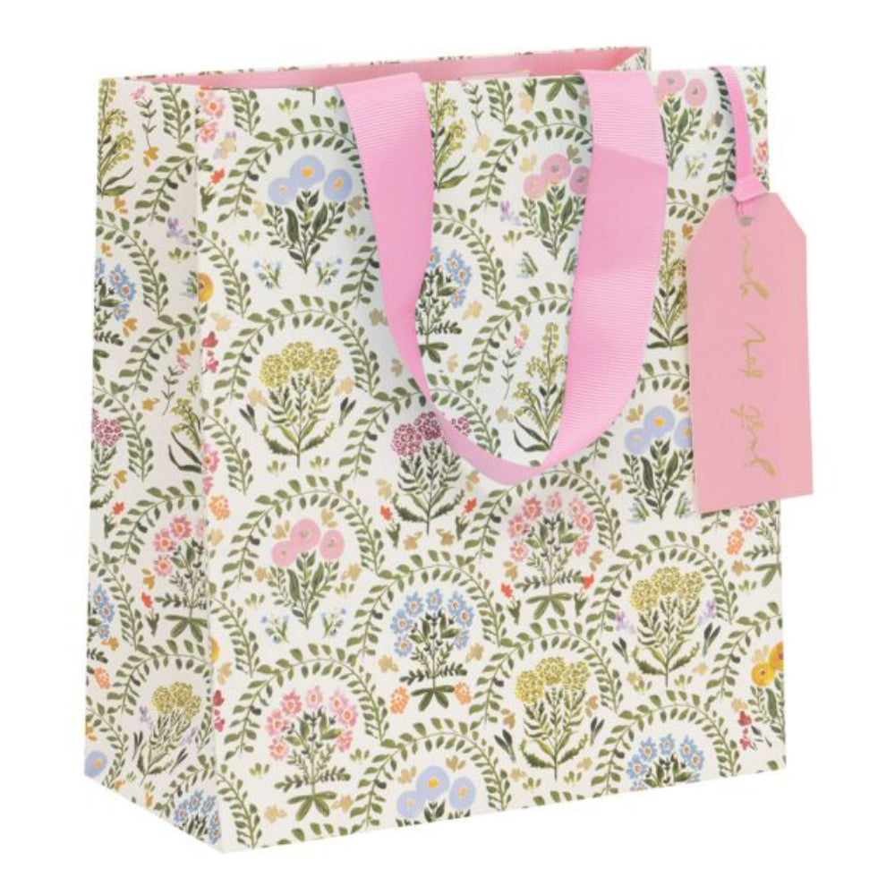 Esta bolsa de regalo mediana en blanco con delicadas flores es la opción perfecta para presentar tus obsequios con estilo y elegancia. Su tamaño ideal permite envolver desde pequeños detalles hasta regalos medianos, mientras que su diseño floral aporta un toque fresco y sofisticado.