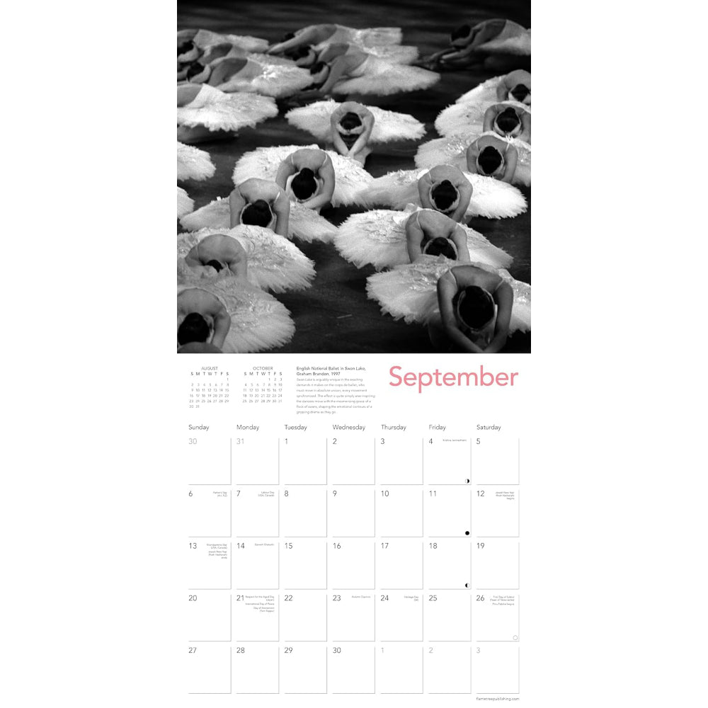 Elegante, emocionante y siempre espectacular, el ballet es una de las expresiones artísticas más admiradas del mundo. Este calendario reúne una cuidada selección de impactantes fotografías en blanco y negro provenientes de la reconocida Theatre and Performance Collection del V&A, capturando con sensibilidad la fuerza, disciplina y belleza de la danza. Cada imagen ofrece una mirada íntima al universo del ballet, destacando el talento de fotógrafos que han sabido inmortalizar su magia sobre el escenario.