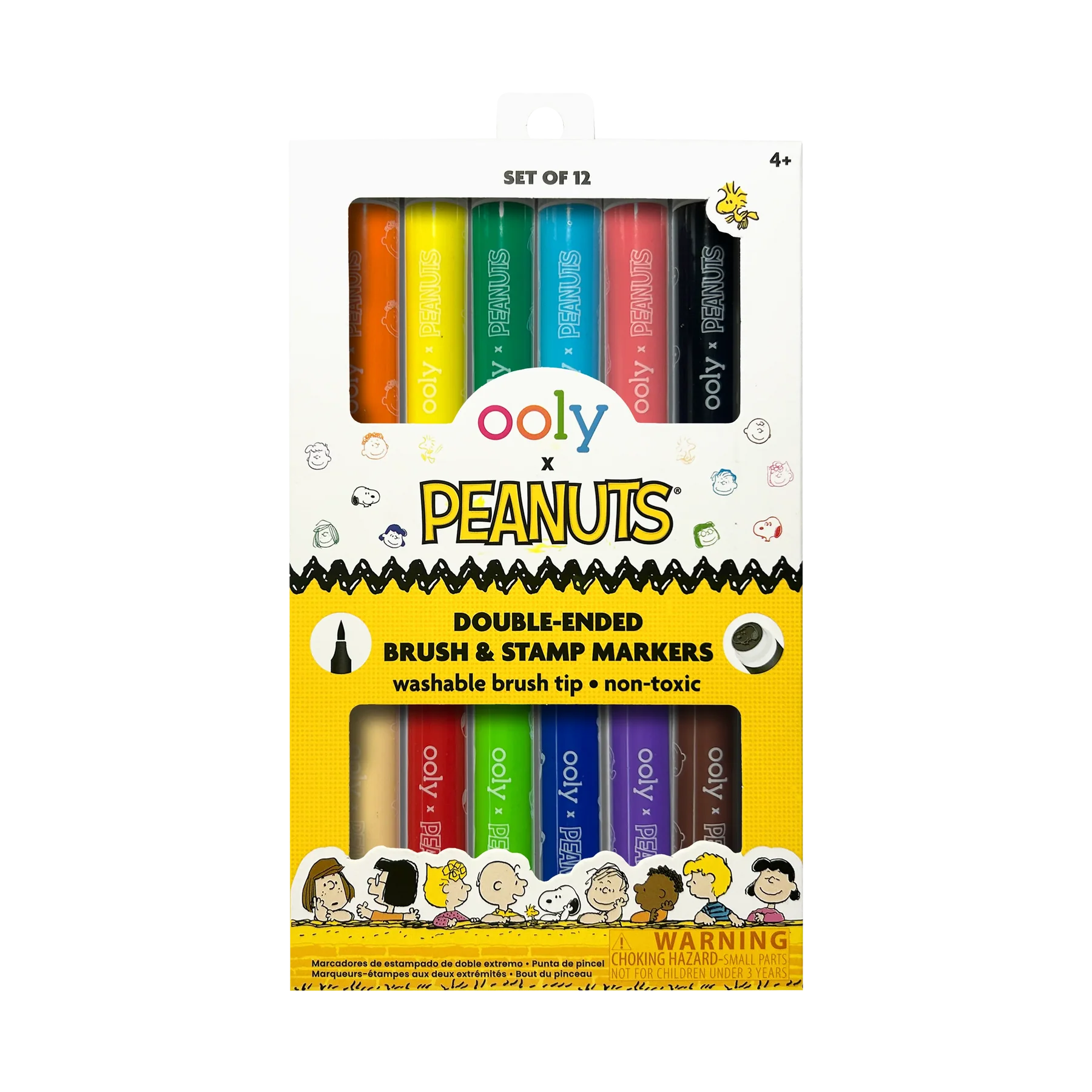 Da rienda suelta a tu creatividad con los marcadores de doble punta OOLY x Peanuts, con Snoopy, Charlie Brown y toda la pandilla de Peanuts. Cada marcador cuenta con una punta de pincel para colorear vibrantemente y una punta de sello para estampar las caras de tus personajes favoritos de Peanuts en el papel. Con un total de 6 marcadores de doble punta, 12 de pincel y 12 de sello, estos marcadores duplican la diversión de tus aventuras artísticas. Ya sea que dibujes un partido de béisbol o colorees el próximo vuelo de Snoopy como el As de la Aviación de la Primera Guerra Mundial, estos marcadores son perfectos para añadir la diversión de Peanuts a cualquier proyecto.