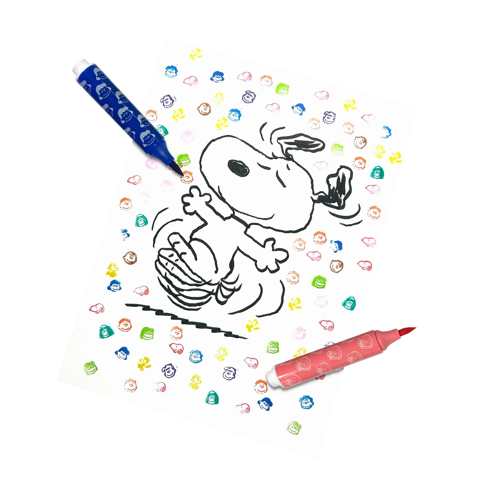 Set de 12 Marcadores Doble Punta Pincel y Sellos Peanuts