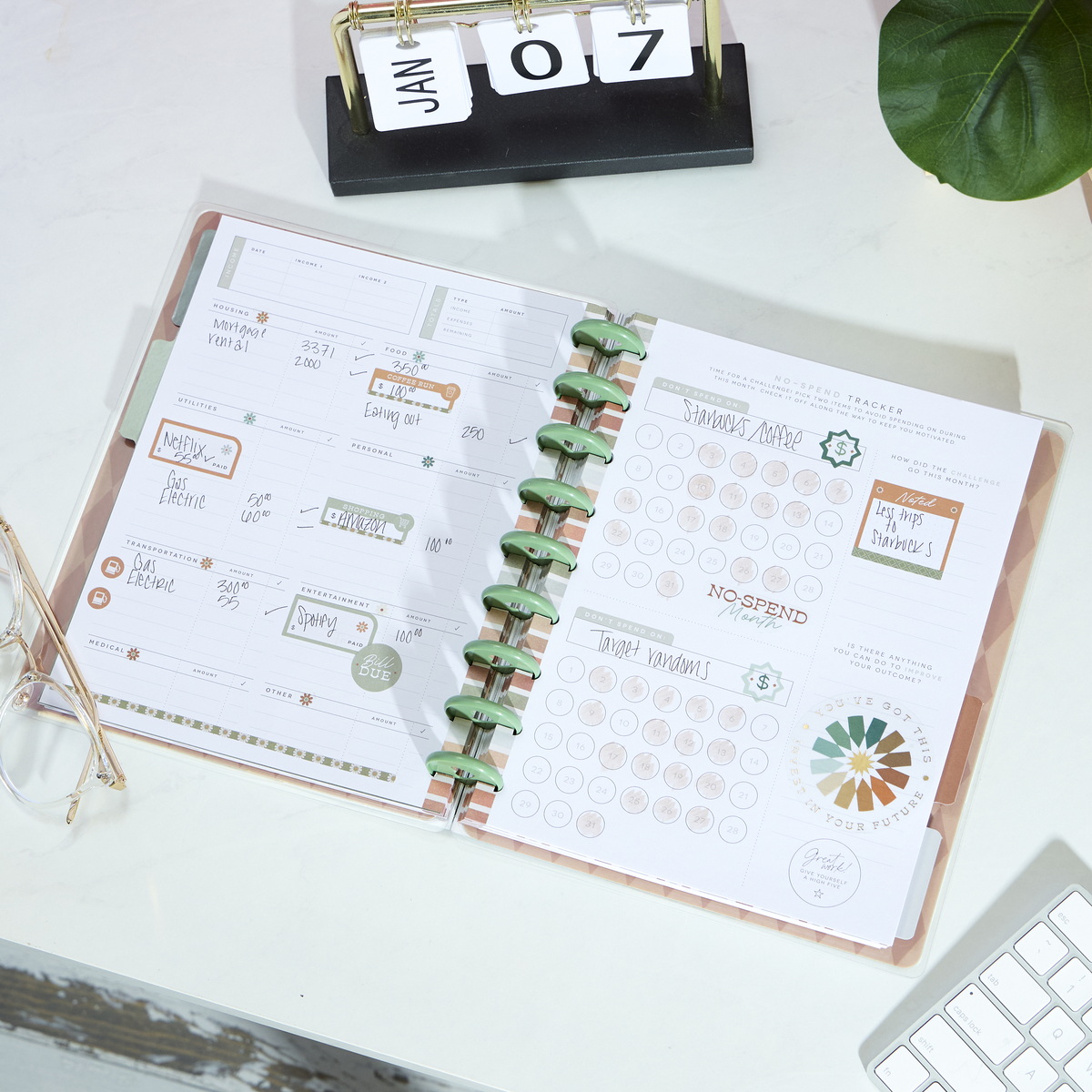Este cuaderno de presupuesto guiado Reflect & Grow. ¿Necesitas controlar tus hábitos de gasto? Usa este cuaderno para comenzar un proceso de elaboración de presupuestos y ver a dónde se mueve tu dinero. Haz un seguimiento de tus cuentas y plantéate desafíos cuando necesites ajustar tu presupuesto. Reflexiona sobre por qué y dónde gastas y disfruta del proceso.