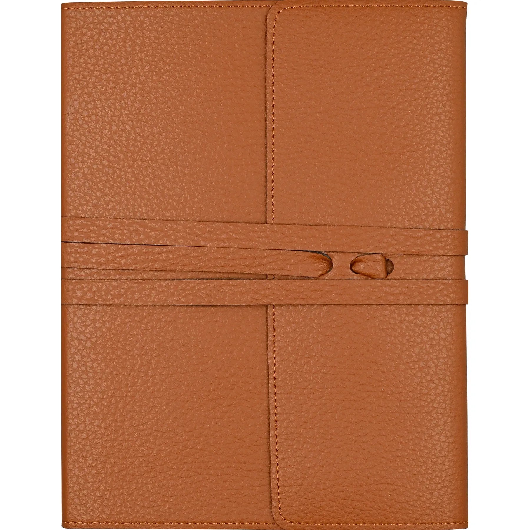 - El cierre con cinta de cuero sintético asegura el cuaderno cuando no está en uso.