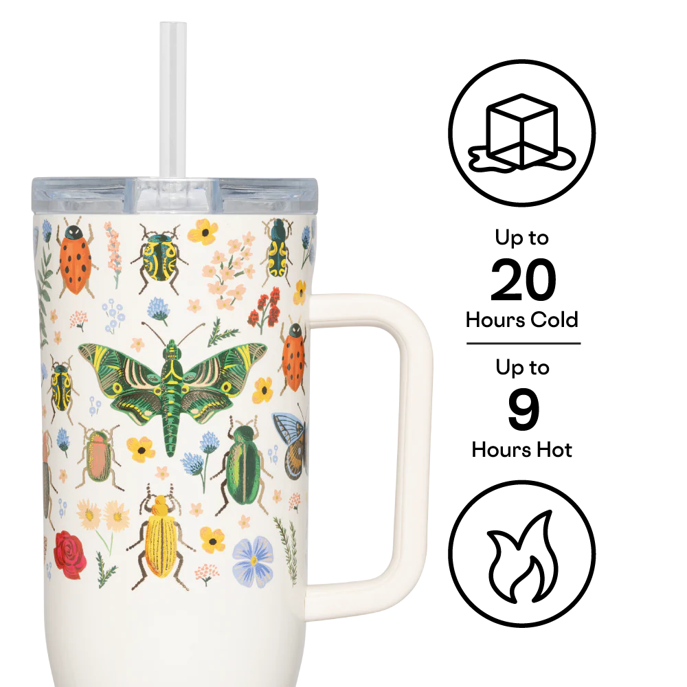 ¡Que comiencen los viajes! Cruiser, el vaso de Corkcicle con bombilla más grande hasta la fecha, mantiene 1,2 litros de tu bebida favorita fría hasta por 20 horas, permitiéndote disfrutar de tus aventuras diarias sin preocuparte por tu hidratación. Cuenta con una exclusiva tapa con doble función (sorbo y pajita), un cómodo asa de agarre suave y una base de silicona que se mantiene en posición vertical sin importar tu destino o cuántas paradas hagas. Ahora disponible con los icónicos estampados florales de Rifle Paper Co.
