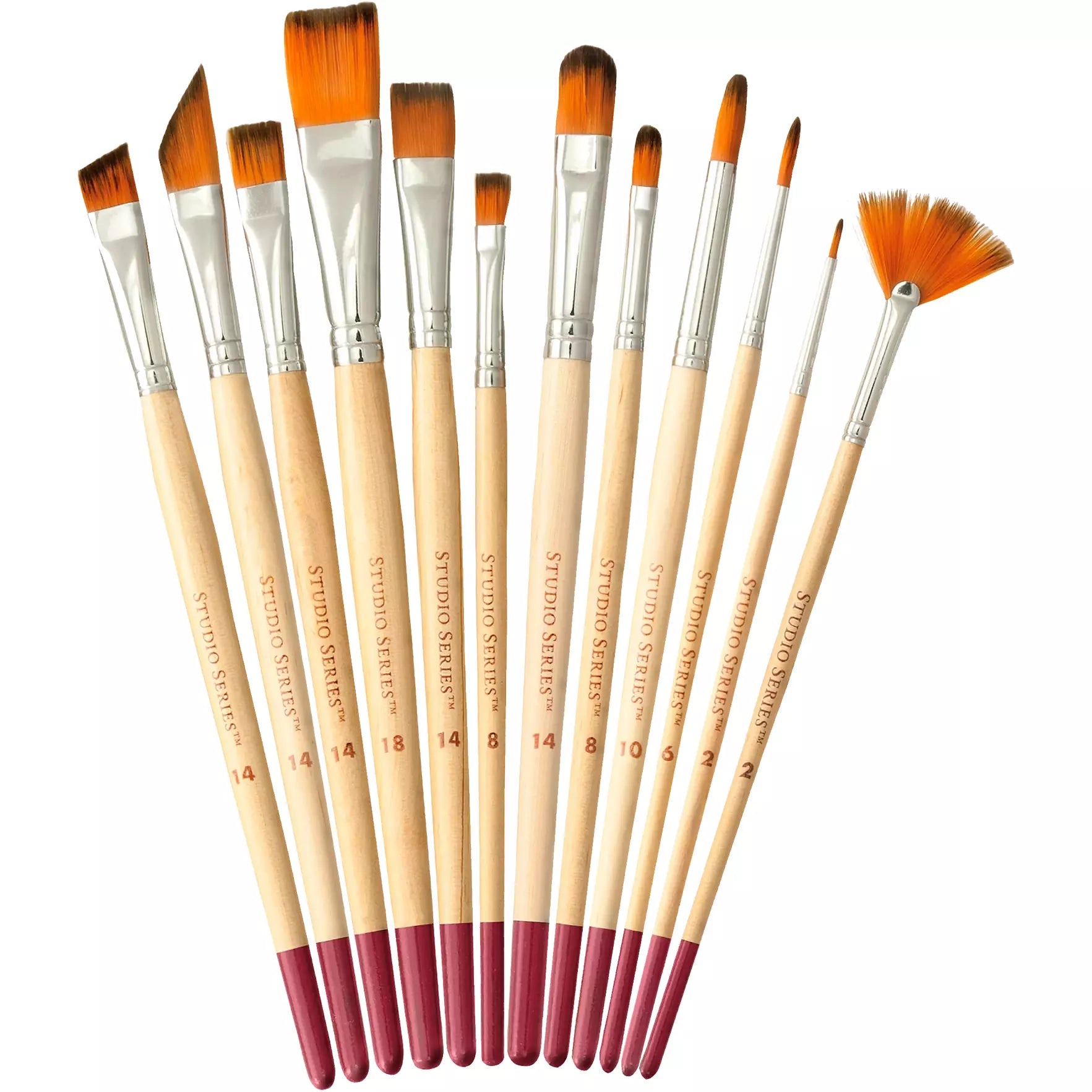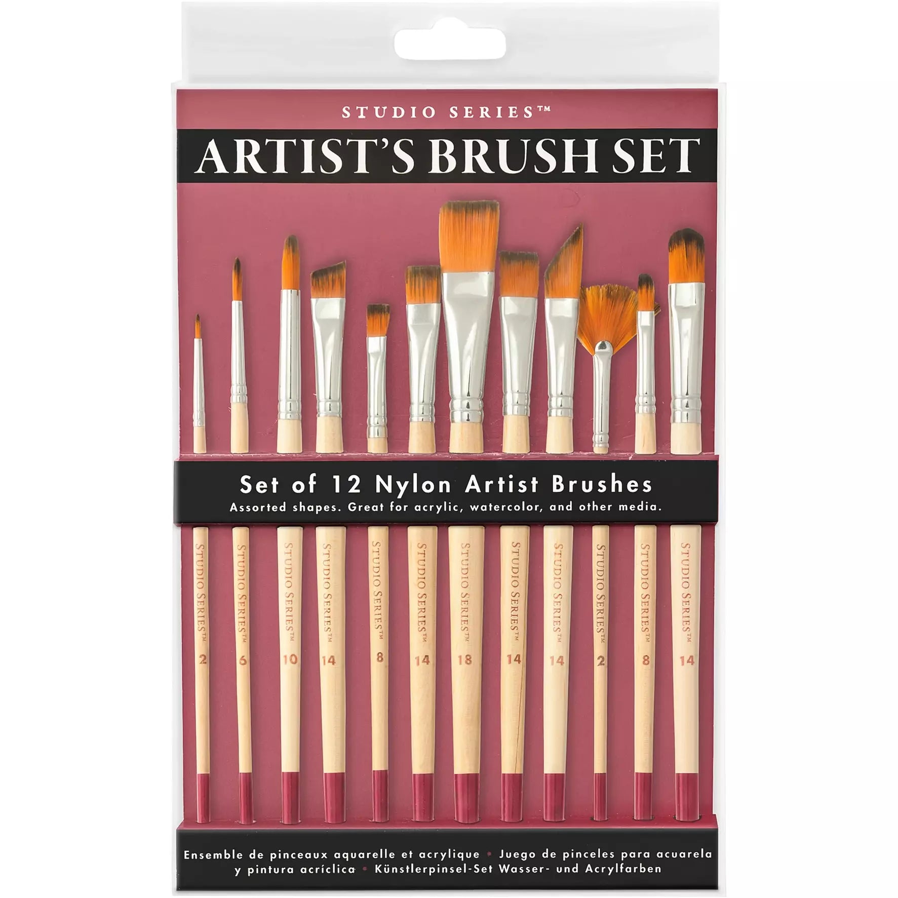 ¡El conjunto de 12 pinceles de artista con calidad profesional son excelentes con pinturas de acuarela y acrílicas! Las cerdas suaves de nylon conservan su forma a través de la pintura y la limpieza. Gama versátil de formas y tamaños de pinceles para detalles finos, cobertura de área amplia y texturas.