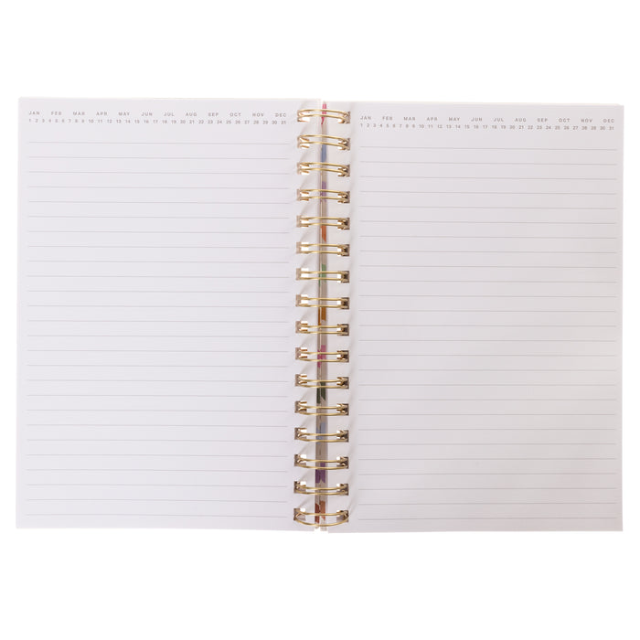 El desgaste del día a día no es un problema para nuestro resistente cuaderno de espiral con tapa dura, que incluye 160 páginas de papel rayado. Su bonita pero resistente tapa evita que las páginas se doblen o se rompan mientras están en tu bolso, mochila o cajón, ¡manteniendo tus notas y secretos a salvo!