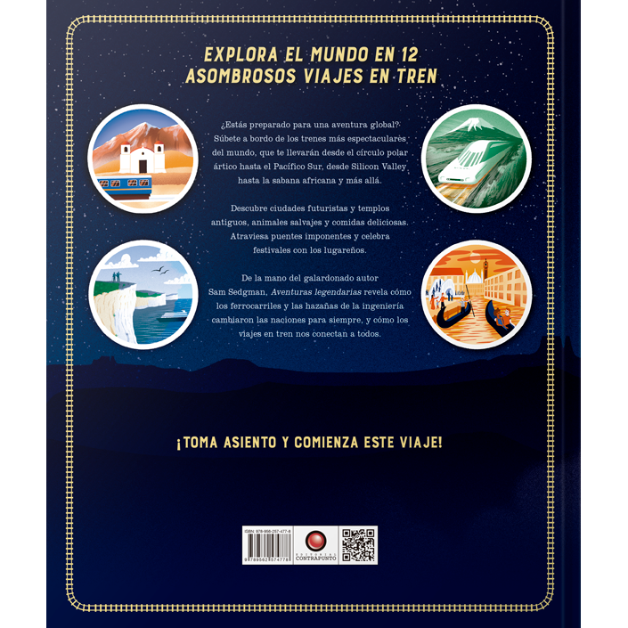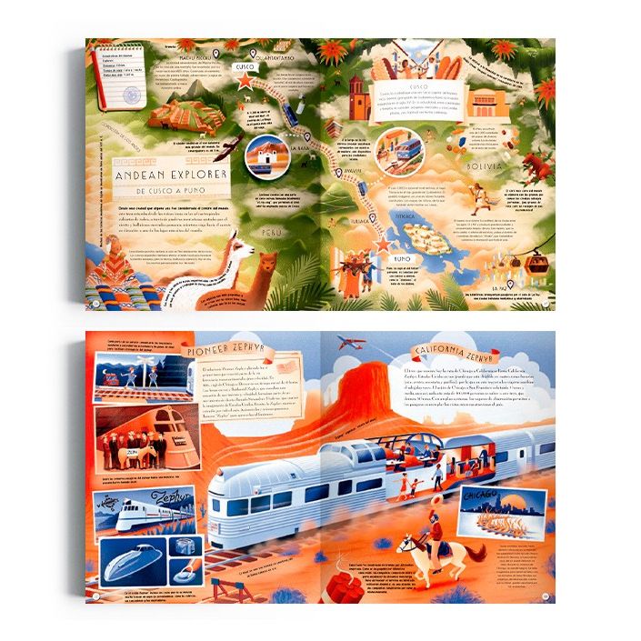 Un libro que invita a emprender un viaje fascinante por el mundo sobre rieles. A través de rutas legendarias, acerca a niños y niñas a paisajes sorprendentes, culturas diversas y proezas de la ingeniería que han marcado la historia del transporte. Cada recorrido despierta la imaginación y la curiosidad, combinando mapas, ilustraciones y relatos que permiten descubrir cómo los trenes han conectado lugares y personas a lo largo del tiempo. Ideal para explorar, aprender y soñar con nuevos destinos desde cada página.