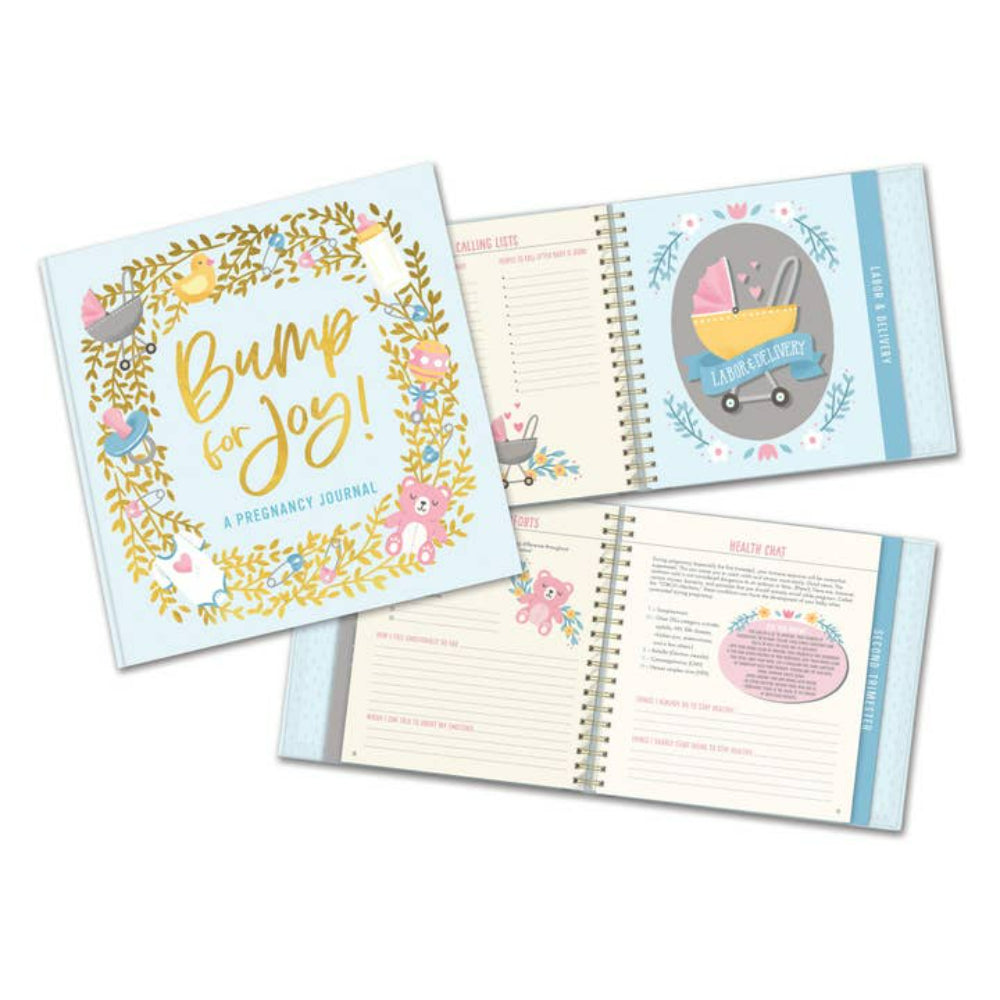 ¡Celebra cada día de tu embarazo con el elegante Diario de Embarazo Azul Bump For Joy! Registra tus pensamientos, sentimientos y avances mientras te preparas para la aventura más grande de tu vida. ¡Deja que Bump For Joy te guíe en el emocionante viaje del embarazo!