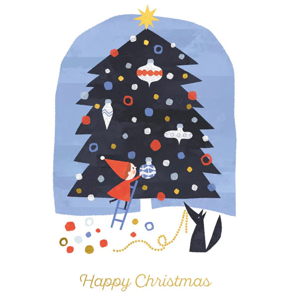 Celebra la magia de la Navidad con esta dulce tarjeta ilustrada, donde un pequeño duende decora con cariño un brillante árbol festivo. Su estilo encantador y lleno de luz hace que cualquier mensaje se sienta especial, convirtiéndola en la forma perfecta de enviar un saludo tierno y memorable a quienes más quieres.