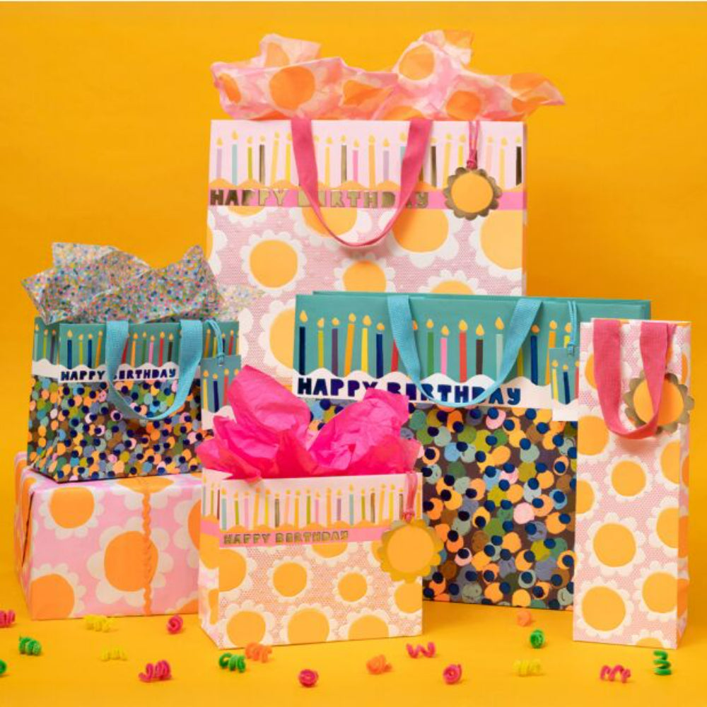 Bolsa Regalo Shopper Rosa Margaritas y Velitas