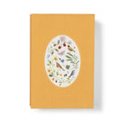 Bloc de notas de escritorio con tapa dura flexible envuelta en tela para encuadernación que presenta ilustraciones exclusivas de Megan Galante, papel con incrustaciones artísticas, detalles en papel dorado metálico y tapa abatible con caballete.