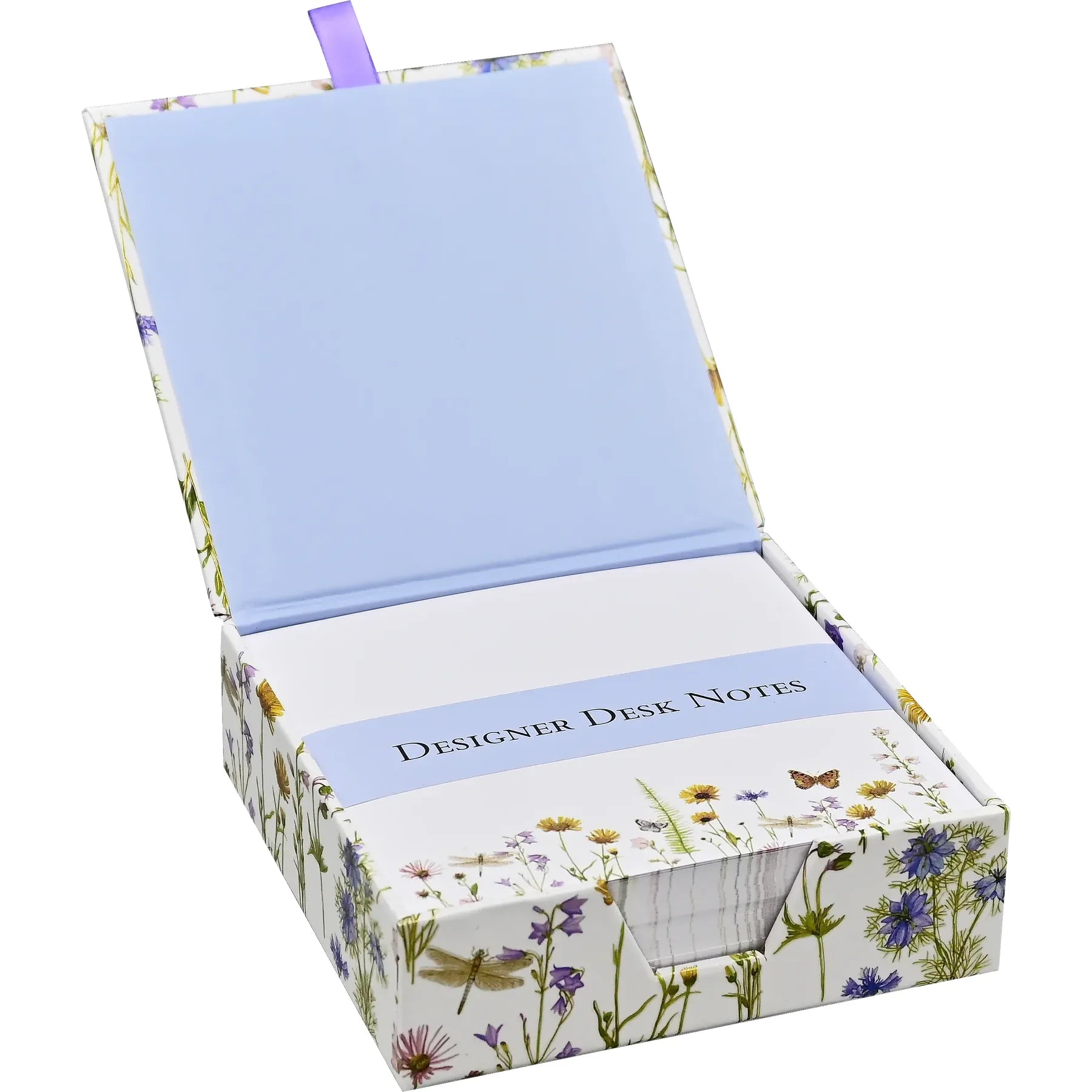 Escribe notas, recordatorios, ideas espontáneas y mucho más en estas bonitas hojas de notas. ¡Nuestra hermosa caja de recuerdos los mantiene al alcance de tu mano! El diseño de la caja de recuerdos presenta mariposas, libélulas, helechos y flores en tonos suaves, adornados con reflejos dorados brillantes.