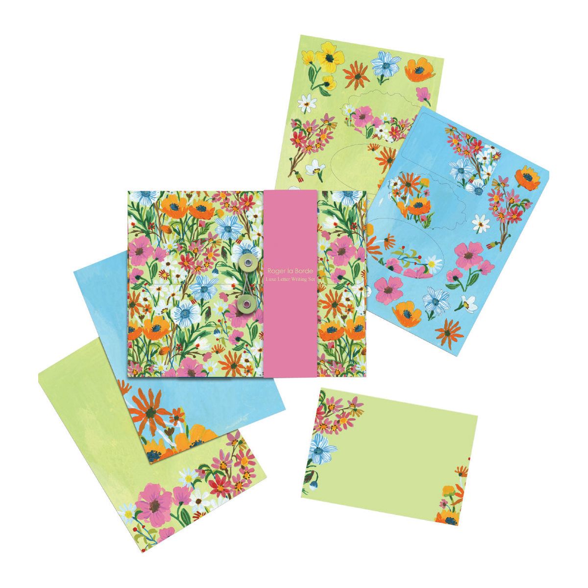 Cada juego incluye 10 hojas de papel para escribir cartas con ilustraciones brillantes (en dos diseños), sobres ilustrados a juego y dos hojas de hermosos stickers... ¡todo empaquetado en una hermosa billetera de cartón de recuerdo!