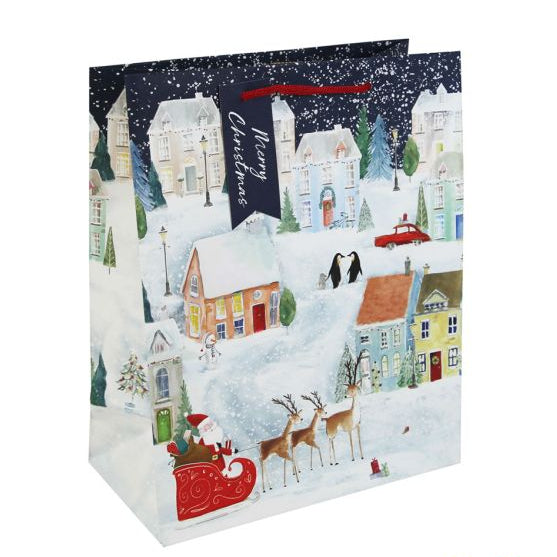 Envuelve tus regalos navideños con magia y encanto gracias a esta bolsa mediana con el clásico diseño de la Aldea de Santa. Su ilustración invernal, llena de nieve y espíritu festivo, captura a la perfección la esencia de la Navidad. Ideal para sorprender y dejar un recuerdo especial en tus seres queridos.