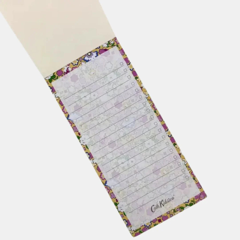 El bloc de notas magnético de Cath Kidston combina estilo y practicidad a la perfección. Con un hermoso estampado floral, este block de notas añade encanto a tu rutina diaria. Su parte trasera magnética garantiza que se mantenga seguro en tu refrigerador o cualquier superficie metálica, lo que facilita anotar tareas y recordatorios. Mantén el orden sin esfuerzo mientras disfrutas de un toque de sofisticación en tu hogar.