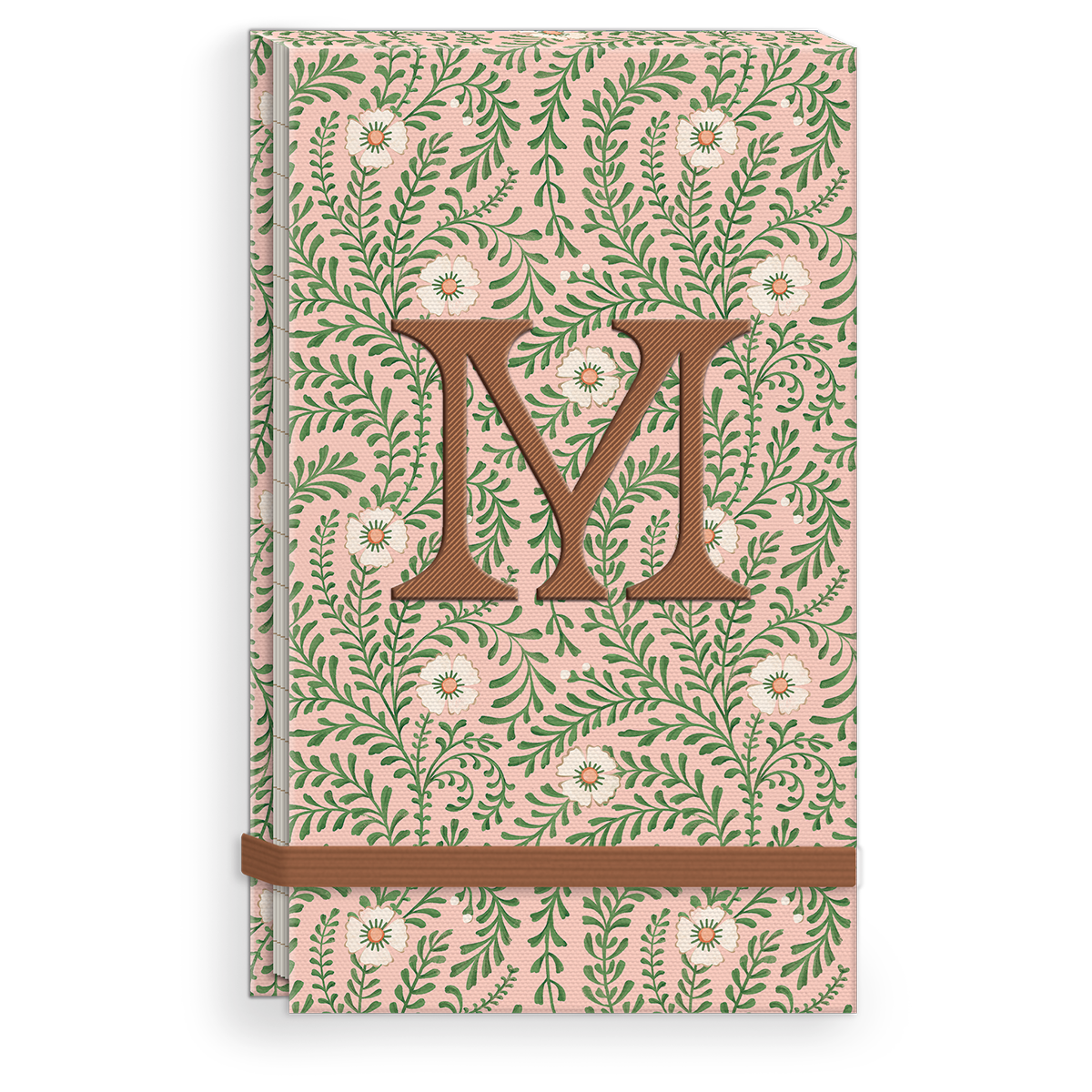 Anota tus inspiraciones en tu block de notas encuadernado que refleja tu elegancia personal. Con cubierta de lona de alta calidad y cierre elástico, protege cada página mientras el elegante patrón floral boutique con tu inicial bordada transforma tu escritorio en un espacio de distinción.