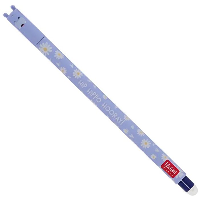 Despídete de tachar errores o buscar cinta correctora Con el Bolígrafo de Gel Borrable Hippo de Legami puedes borrar tus errores y seguir escribiendo Gracias a la tinta azul sensible al calor y la punta de goma puedes hacer que los errores desaparezcan sin dañar la superficie Con una punta de 0,7 mm este es el bolígrafo que siempre querrás tener a mano