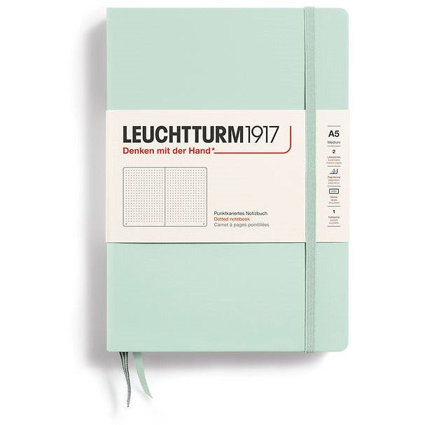 El modelo clásico de Leuchtturm es sin duda la libreta de tamaño mediano (A5). Cuenta con 251 páginas numeradas y el espacio suficiente para escribir, dibujar, anotar, ordenar los pensamientos y estructurarlos. Elige el color, entre las más de 15 opciones disponibles, y el tipo de pautado (cuadriculado, punteado, liso o de líneas) que más te guste. ¡Elegancia y calidad en una libreta!