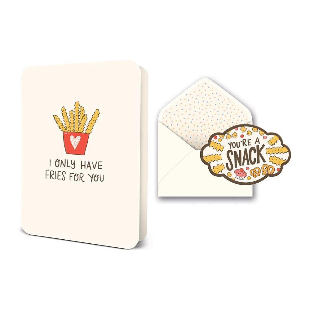 ¡Sólo tengo papas fritas para ti! Sorprende a tu ser querido con esta tarjeta única con un lindo mensaje de amor. Hazle saber cuánto significan para ti ¡con un toque divertido de papas fritas! Haz que su día sea especial con esta tarjeta creativa.