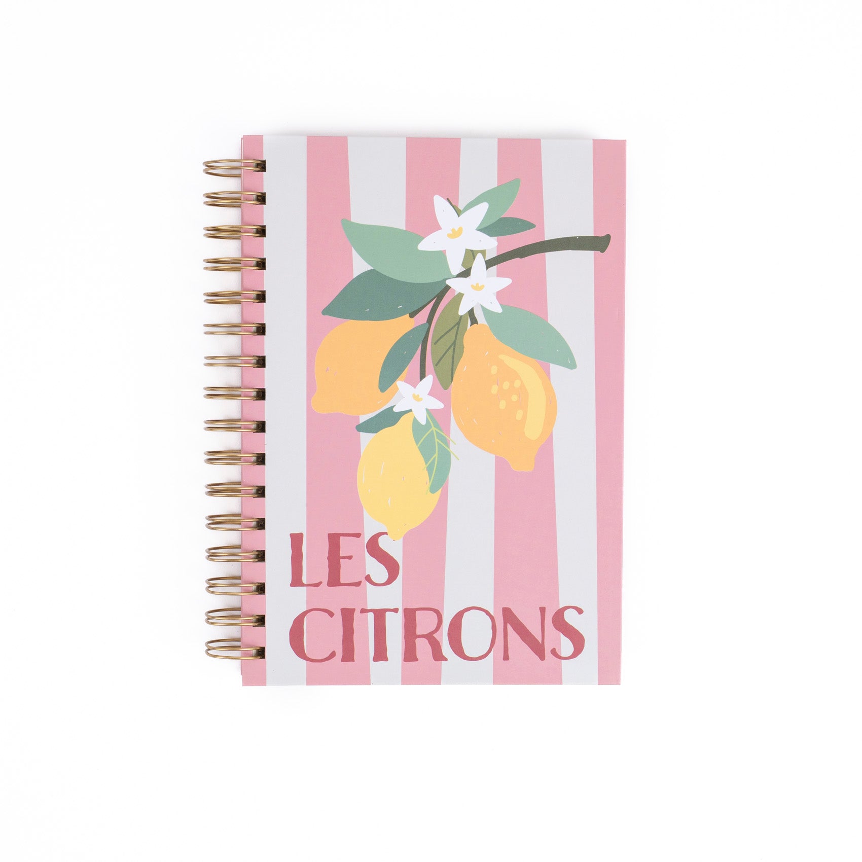 Este cuaderno mediano con diseño limón es perfecto para llevar tus ideas y notas a donde vayas. Su tamaño práctico facilita el transporte, mientras que sus páginas de calidad aseguran una escritura cómoda y sin manchas.
