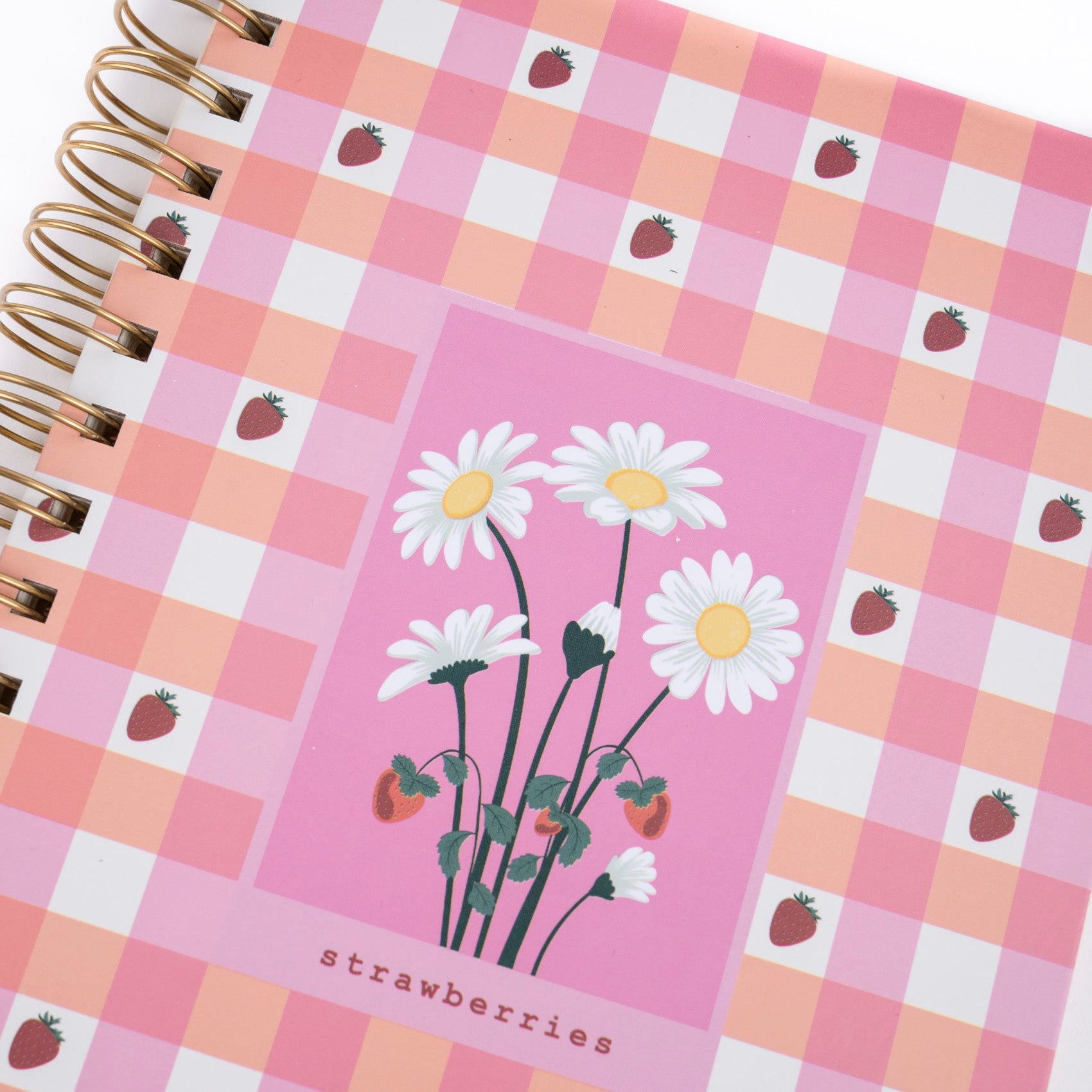 Este cuaderno mediano de flores y frutillas en tonos rosas combina estilo y funcionalidad para inspirar tu creatividad diaria. Su tamaño práctico te permite llevarlo a todas partes, ideal para tomar notas, organizar ideas o planificar tus días con entusiasmo.