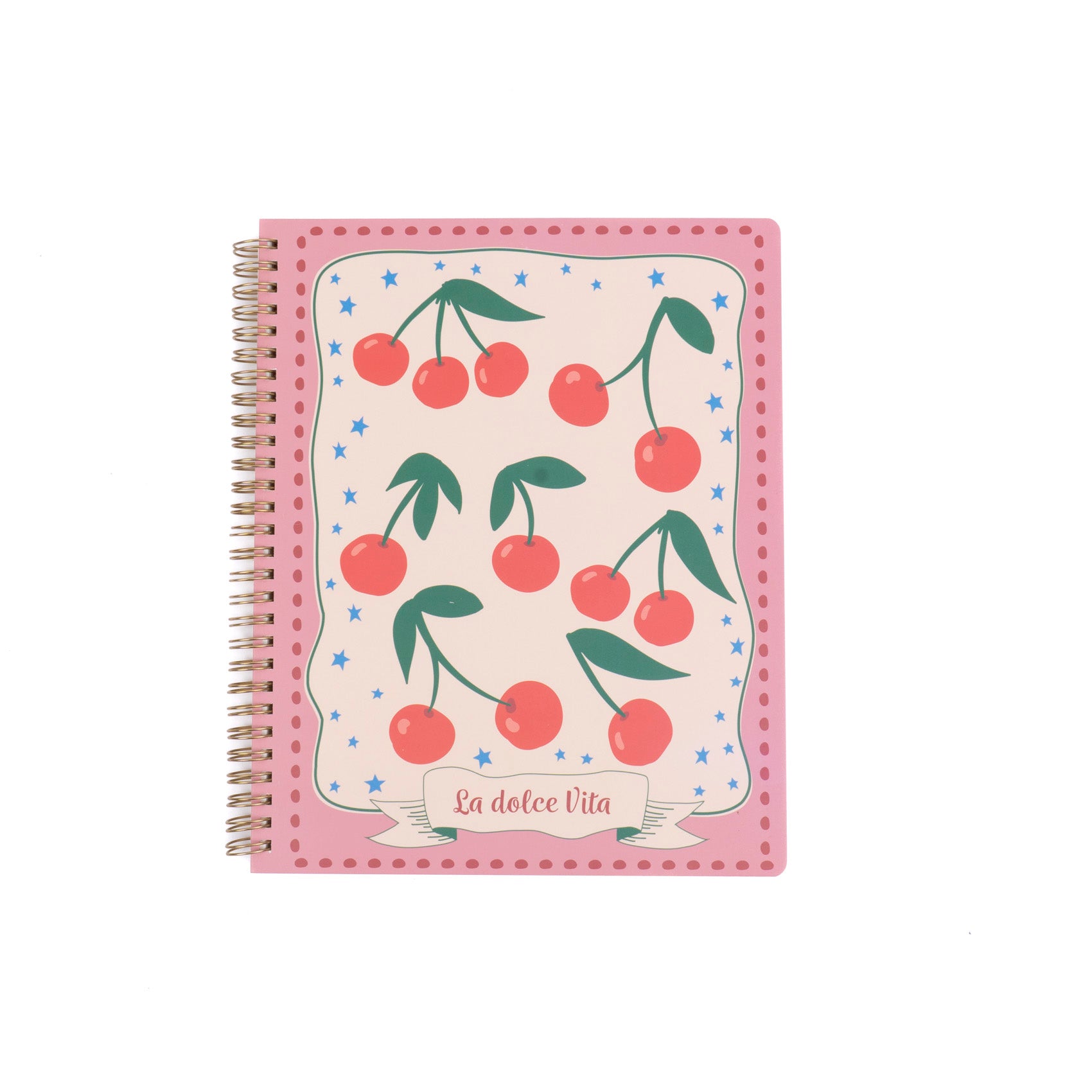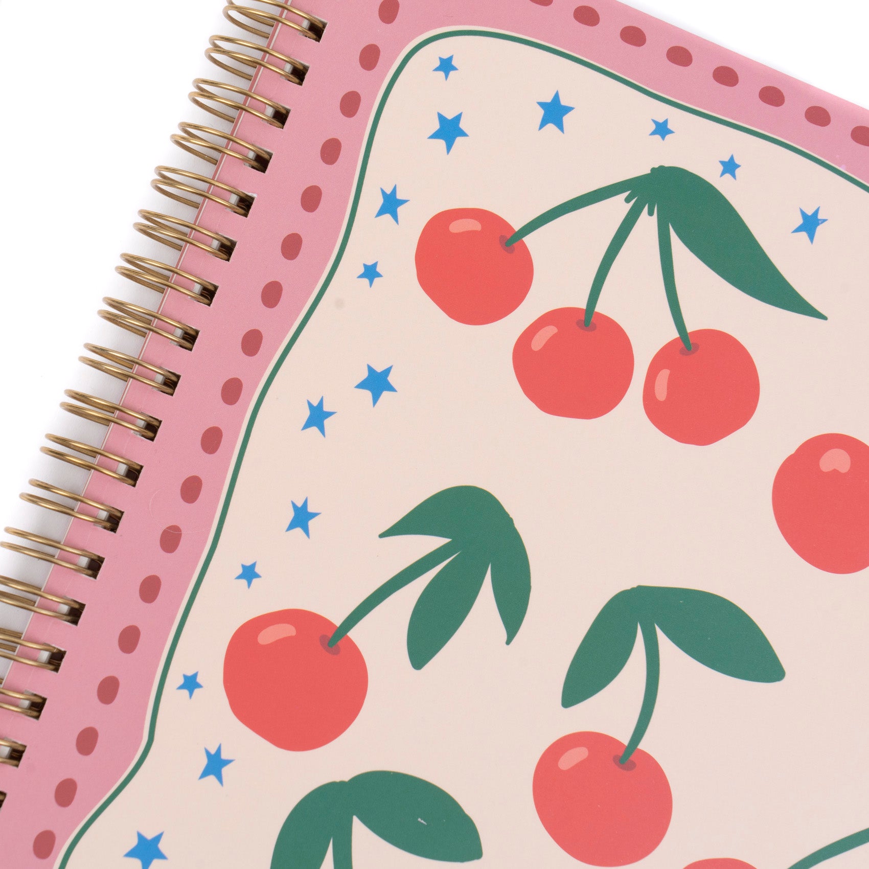 Este Cuaderno Grande Cerezas combina practicidad con un diseño encantador. Su tamaño amplio ofrece espacio suficiente para organizar tus ideas, notas o proyectos, mientras que la cubierta con estampado de cerezas le da un toque fresco y alegre. Ideal para estudiantes, profesionales o para quienes disfrutan escribir, este cuaderno te inspira a capturar cada pensamiento con estilo y comodidad.