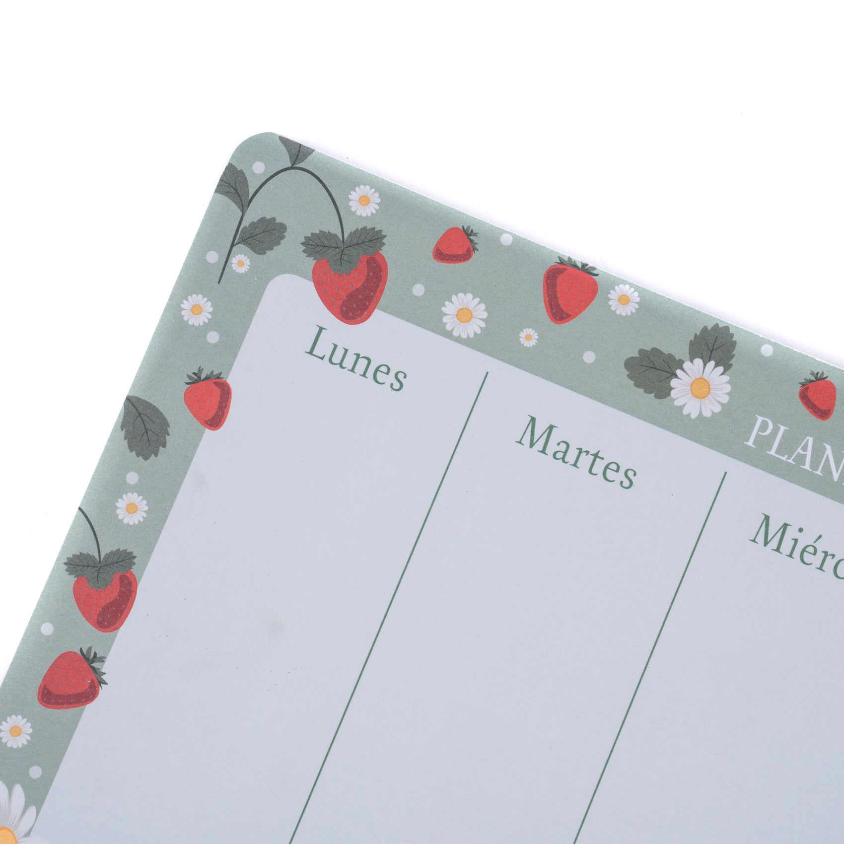 Organiza tu semana con estilo y frescura gracias al Planificador Semanal Frutillas. Su diseño alegre y práctico te ayudará a planificar tus tareas, citas y metas de manera clara y efectiva, facilitando tu productividad diaria.