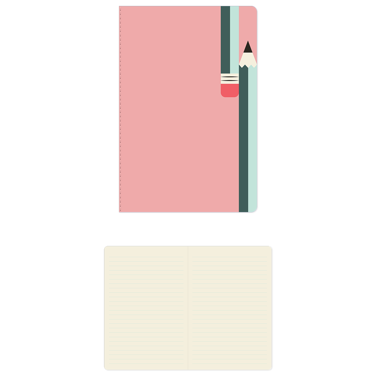 Set de 3 Libretas Medianas Rosado Manzana y Lapiz