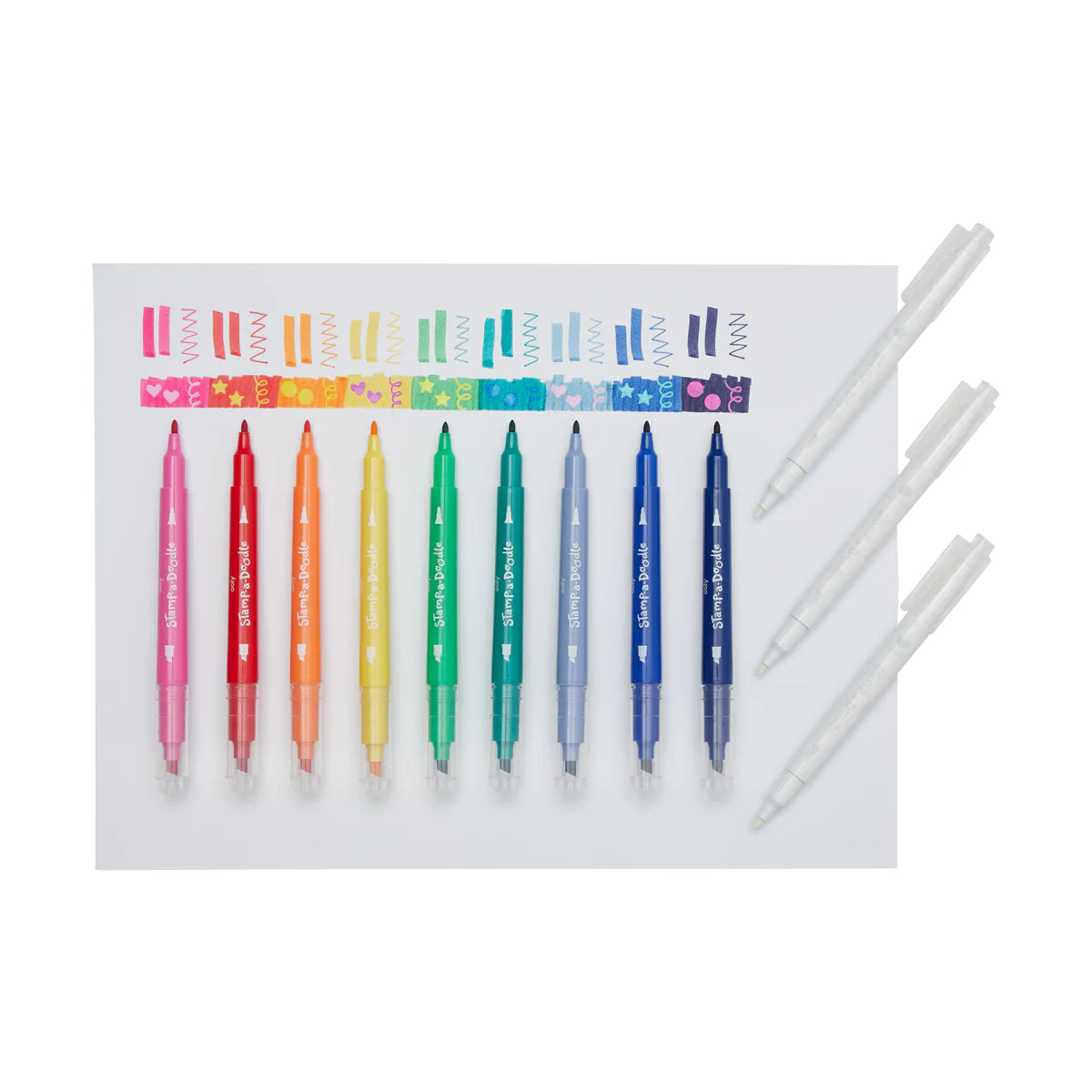 ¡Este set de marcadores con sello es todo lo que necesitas para dejar tu marca! Son 9 marcadores con una punta diferente en cada extremo, y tres marcadores adicionales que cambian de color con un sello divertido.
