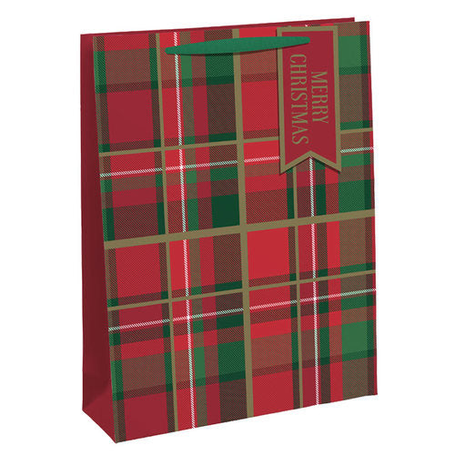 Envuelve tus detalles navideños con el encanto clásico de la Navidad. Esta bolsa de regalo, con su diseño tartán en rojos y verdes y una elegante etiqueta “Merry Christmas”, convierte cualquier obsequio en un momento especial. Es ese toque cálido que recuerda reuniones en familia, luces brillando y abrazos que se guardan para siempre. Solo añade tu regalo… y deja que la magia haga el resto.