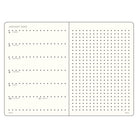 - Cada página muestra la semana del calendario a la izquierda y una página punteada de notas a la derecha