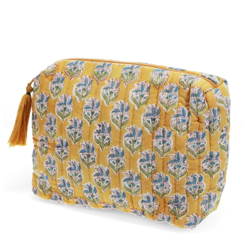 Organiza tus esenciales con elegancia usando este cosmetiquero espacioso y versátil. Confeccionado en algodón con textura acolchada, presenta un cierre de cremallera con detalle de borla en rosa que combina perfectamente con el patrón floral Kimaya Ligero y práctico, es ideal para guardar artículos de tocador, accesorios de viaje o maquillaje. Complementa tu colección con nuestros cosmetiqueros a juego y disfruta de un almacenamiento organizado con estilo.