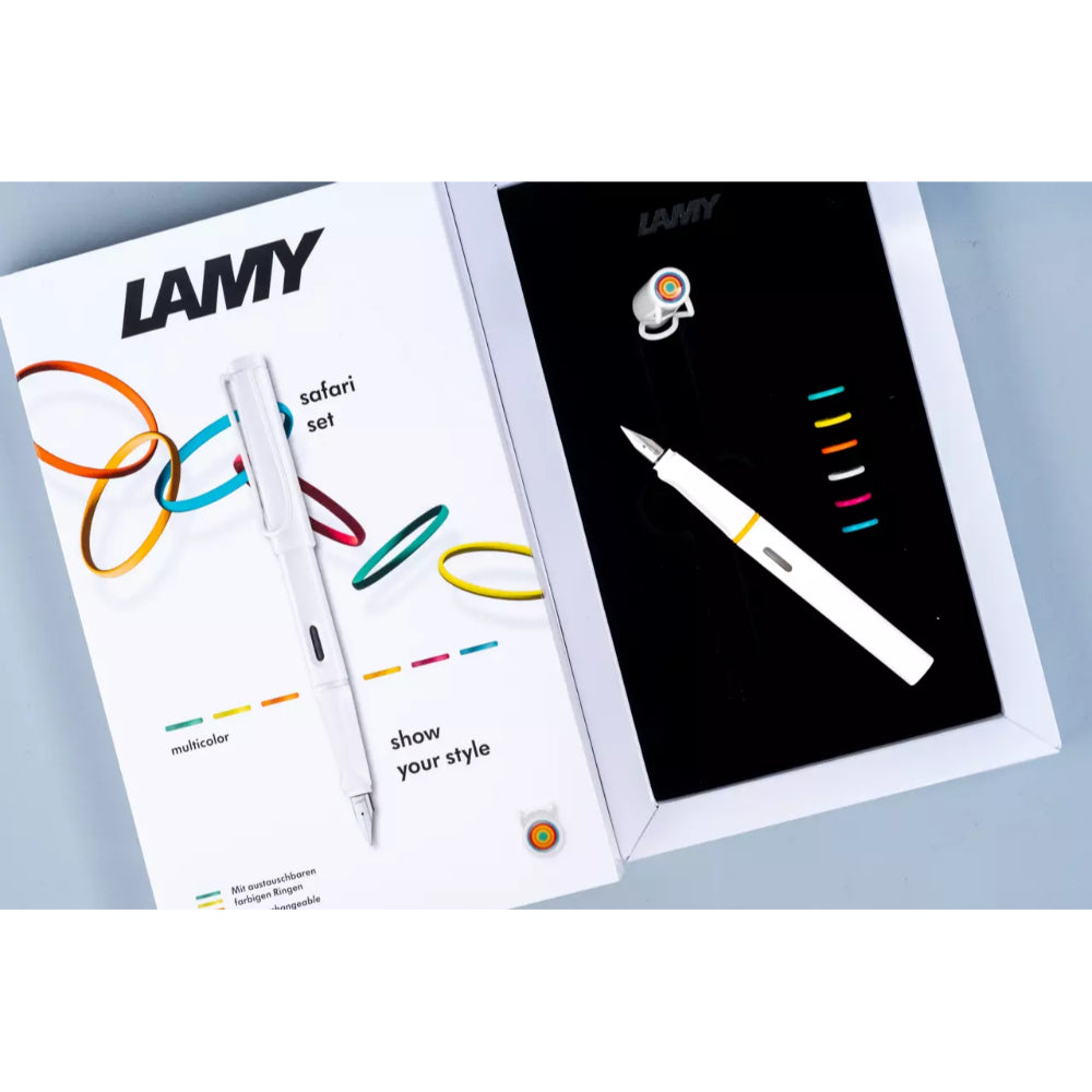 Pluma Estilográfica Safari All White Multi + 6 Anillos De Colores
