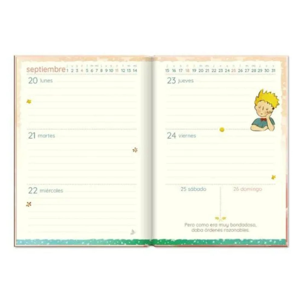 Organiza tu año con estilo y magia. Esta agenda mini de 12 meses trae contigo el encanto de El Principito, perfecto para estudiantes, profesionales y soñadores. Su tamaño compacto cabe en cualquier bolso, mientras que sus páginas ilustradas transforman la planificación diaria en un momento inspirador. Contiene datos identificación, calendarios 2026 y 2007, registro de cumpleaños, balance de cada mes. Cierre con elástico, bolsillo con fuelle, forros interiores impresos, cinta marcadora y lamina de stickers.