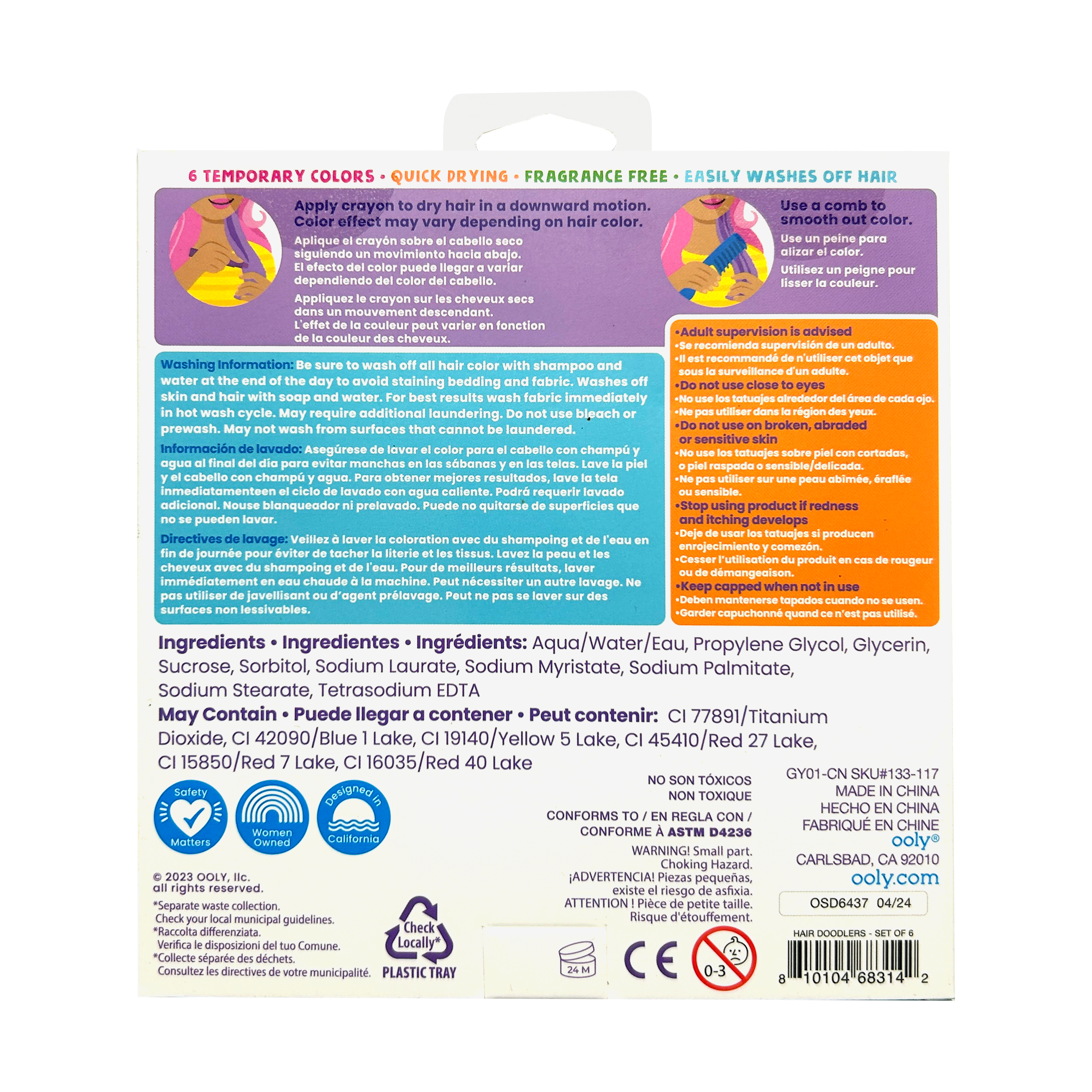 - Set de 6 crayones de color para el cabello