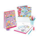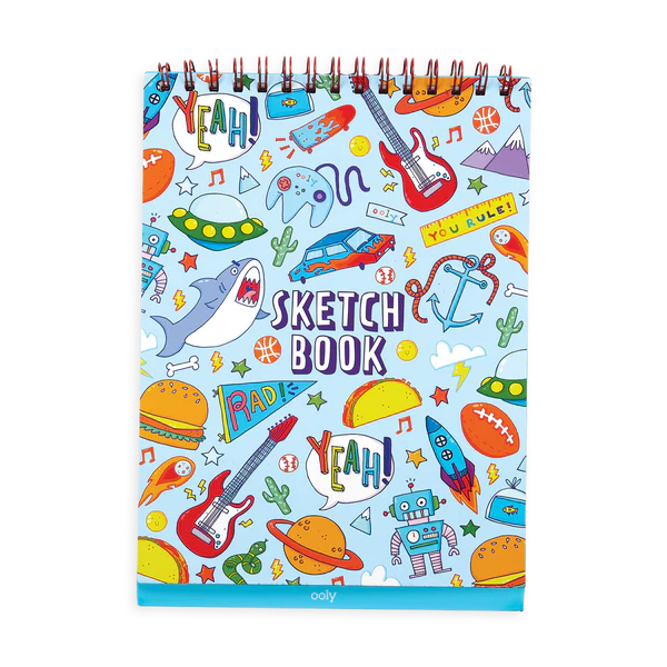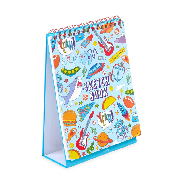 Tiburones, naves espaciales y guitarras rockeras forman una atractiva portada para un cuaderno de bocetos destacado. ¡El cuaderno de bocetos Awesome Doodles no sólo tiene espacio para muchos bocetos, sino que también los mostrará! Este extraordinario cuaderno de bocetos tiene su propio soporte tipo caballete incorporado. ¡Con la divertida tapa laminada con detalles de garabatos, la inspiración comienza aquí!