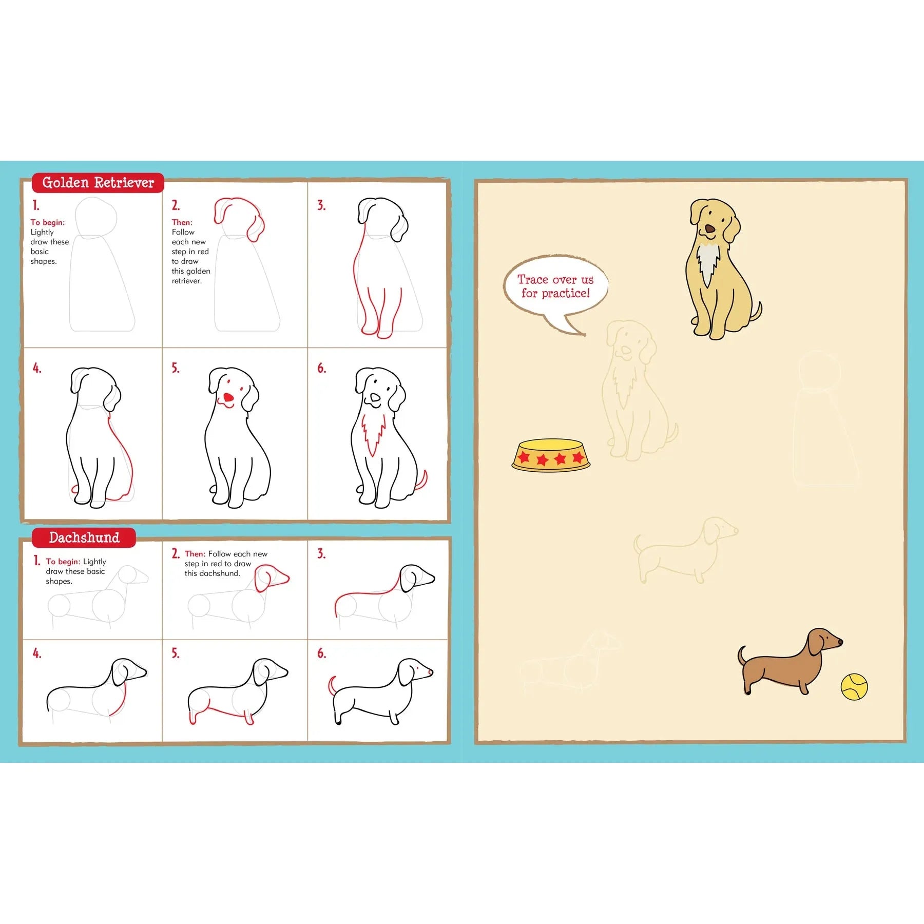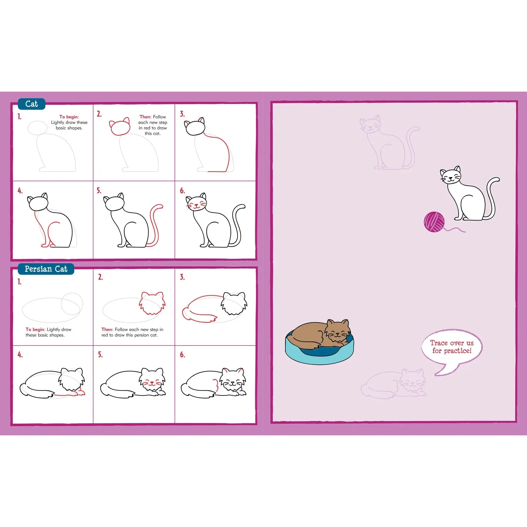 - Las líneas de guía rojas en cada paso que hacen que completar cada dibujo sea simple, fácil, satisfactorio y DIVERTIDO