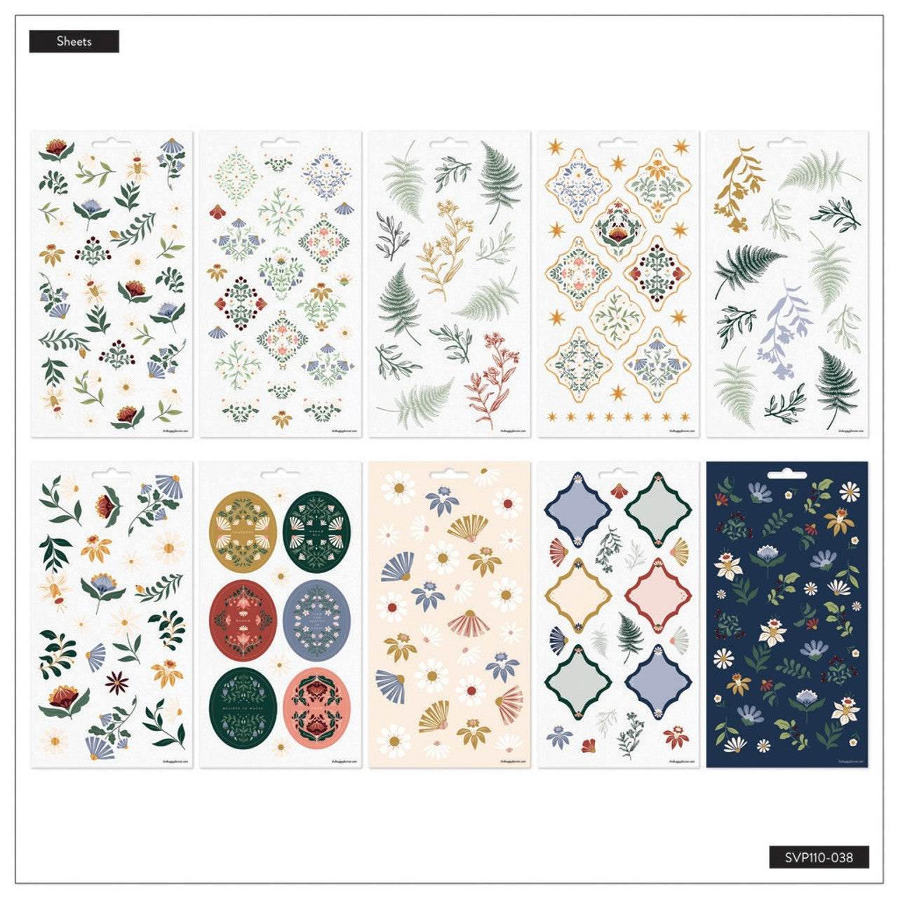 Adopta la atmósfera de un fresco bosque con estas 10 hojas de calcomanías de flores del bosque.