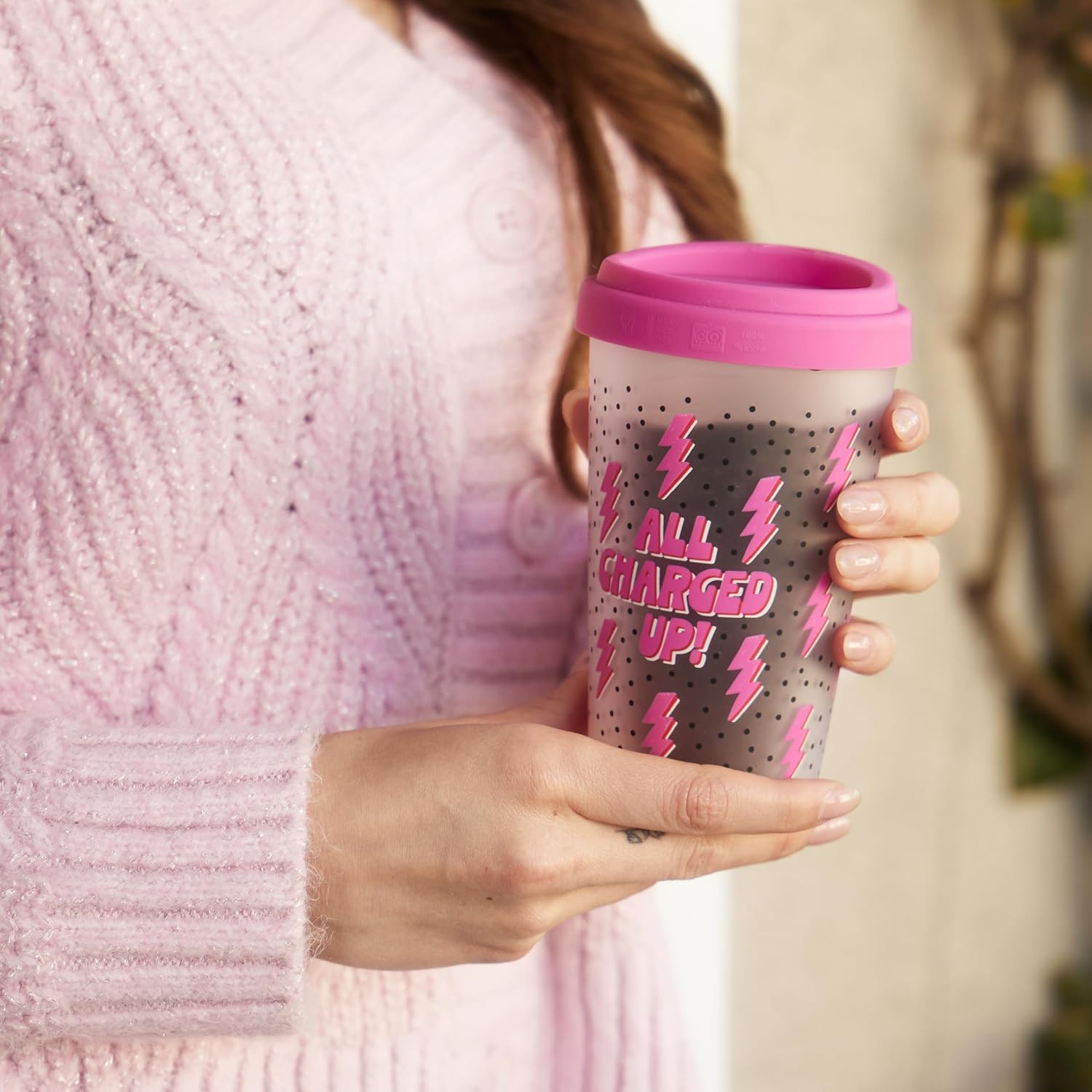 ¡Prepárate para estar cargado de energía con nuestro Vaso de Vidrio Charged Up! Diseñado para cuidar el medio ambiente, este vaso de café de vidrio ecológico rosado te mantendrá hidratado y listo para conquistar el día.