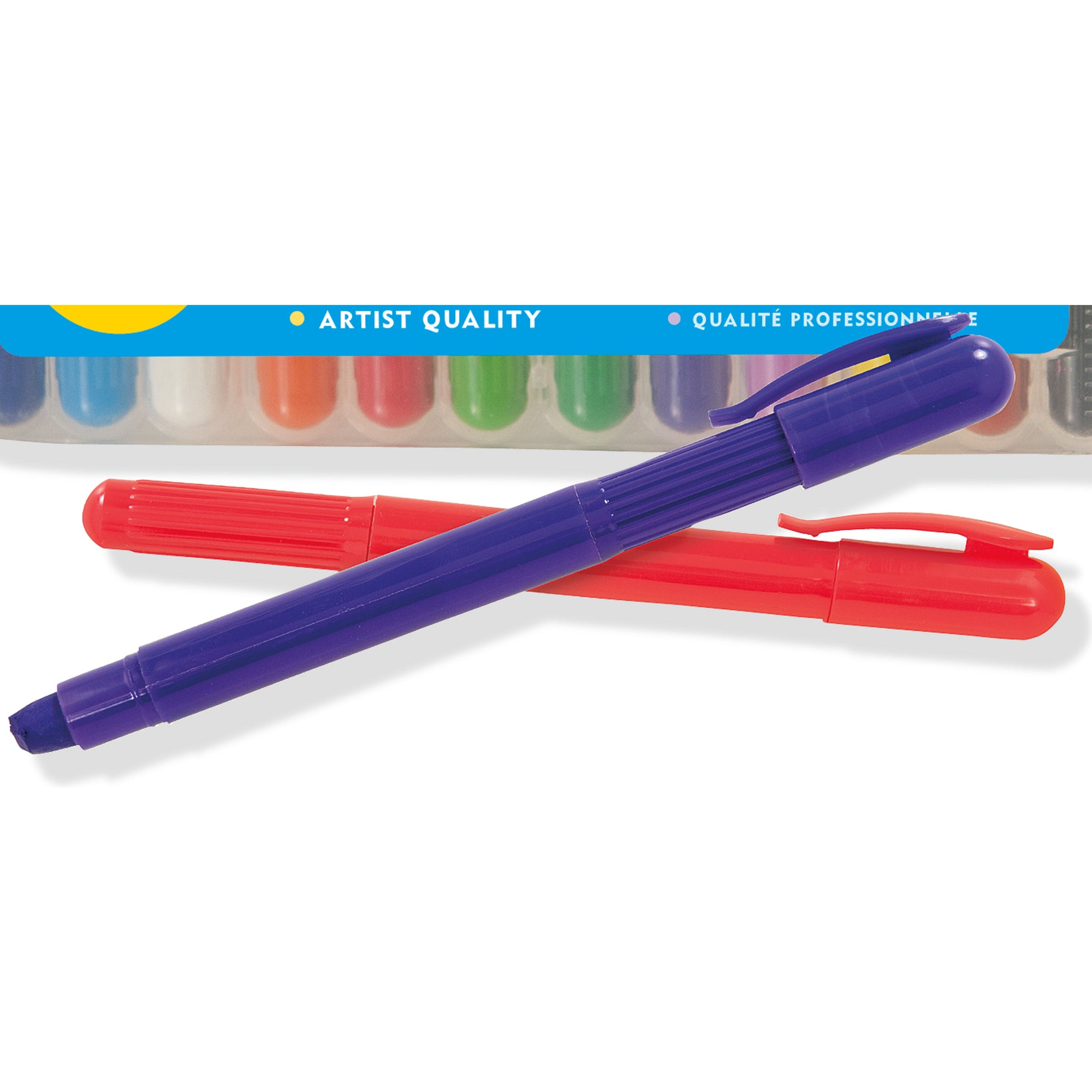 - 12 crayones solubles en agua con calidad de artista: azul real, azul cielo, blanco, amarillo, rojo, verde hierba, verde esmeralda, violeta, rosa, naranja, marrón, negro.